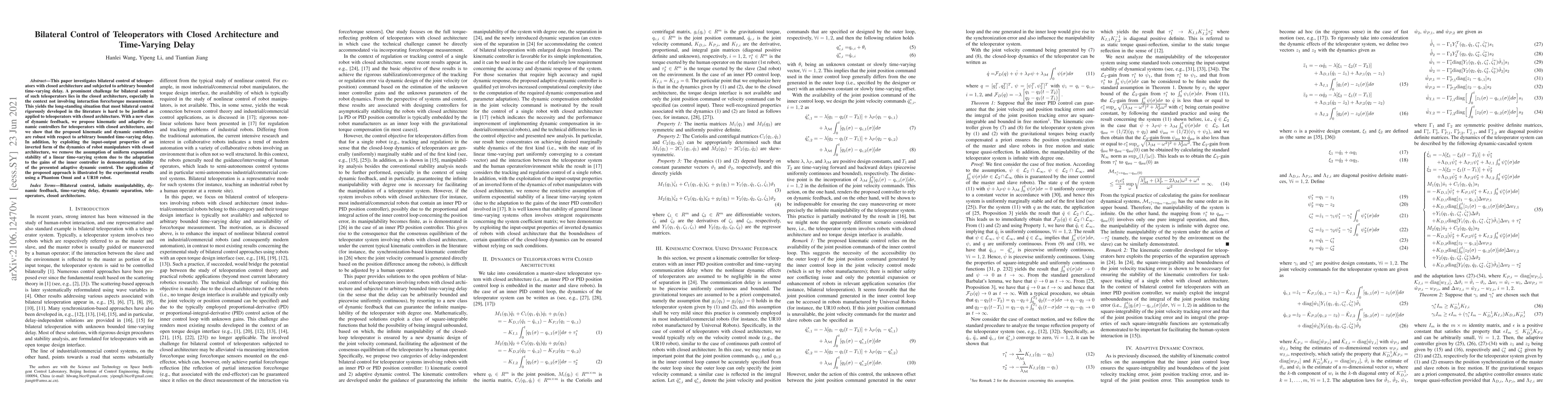 This paper investigates bilateral control of teleoperators with closed architecture and subjected to arbitrary bounded time-varying delay. A prominent challenge for bilateral control of such teleoperators lies in the closed architecture, especially in the context not involving interaction force/torque measurement. This yields the long-standing situation that most bilateral control rigorously developed in the literature is hard to be justified as applied to teleoperators with closed architecture. With a new class of dynamic feedback, we propose kinematic and adaptive dynamic controllers for teleoperators with closed architecture, and we show that the proposed kinematic and dynamic controllers are robust with respect to arbitrary bounded time-varying delay. In addition, by exploiting the input-output properties of an inverted form of the dynamics of robot manipulators with closed architecture, we remove the assumption of uniform exponential stability of a linear time-varying system due to the adaptation to the gains of the inner controller in demonstrating stability of the presented adaptive dynamic control. The application of the proposed approach is illustrated by the experimental results using a Phantom Omni and a UR10 robot.