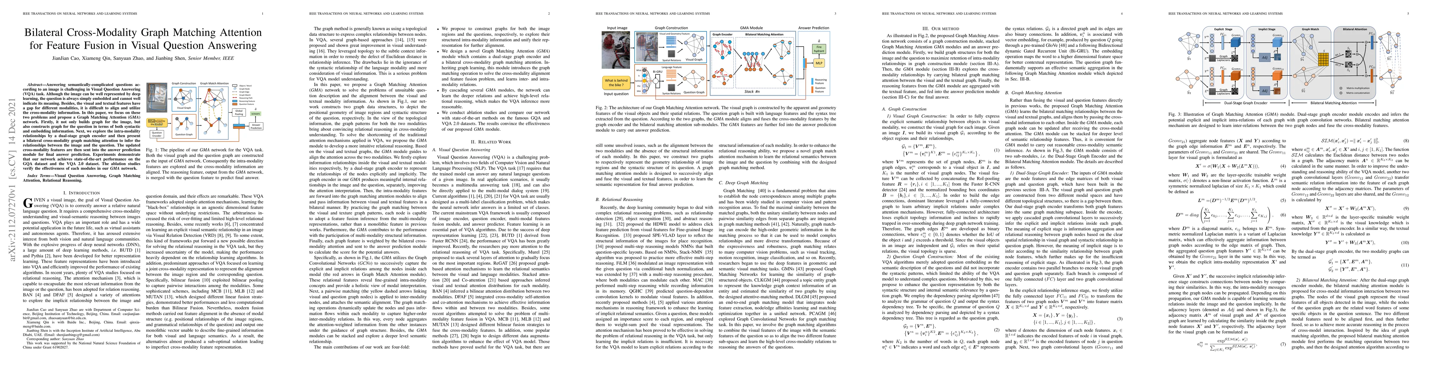 This paper introduces a Graph Matching Attention (GMA) network to enhance feature fusion for Visual Question Answering (VQA) by constructing graphs for both images and questions to capture intra-modality and cross-modality relationships, achieving state-of-the-art performance on GQA and VQA 2.0 datasets. The GMA network employs a dual-stage graph encoder and bilateral cross-modality graph matching attention to effectively align and utilize cross-modality information.
