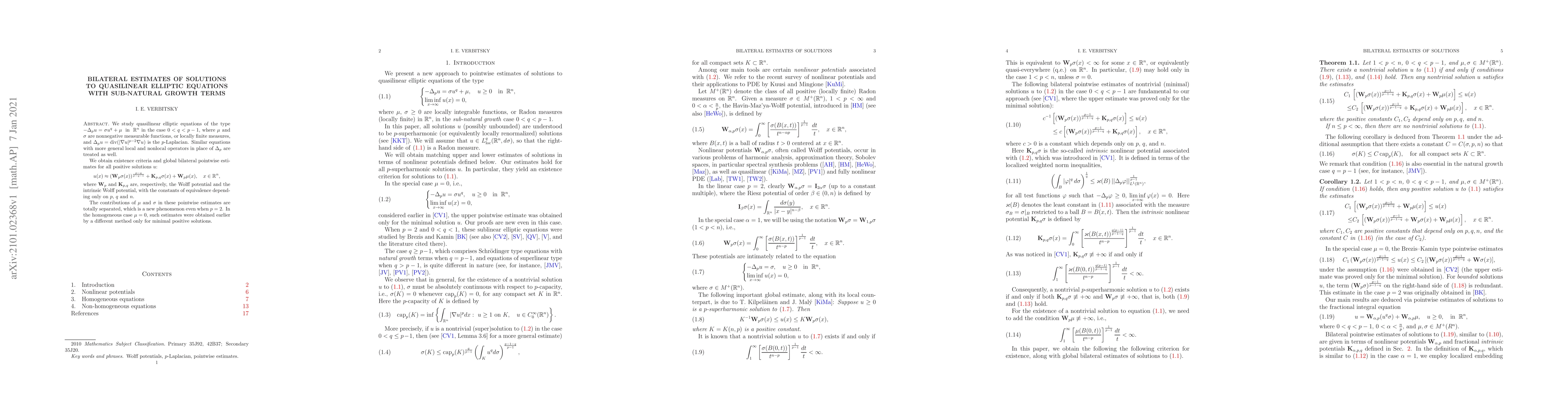 This paper establishes global bilateral pointwise estimates for solutions to quasilinear elliptic equations with sub-natural growth terms, providing a new phenomenon even when p=2.
