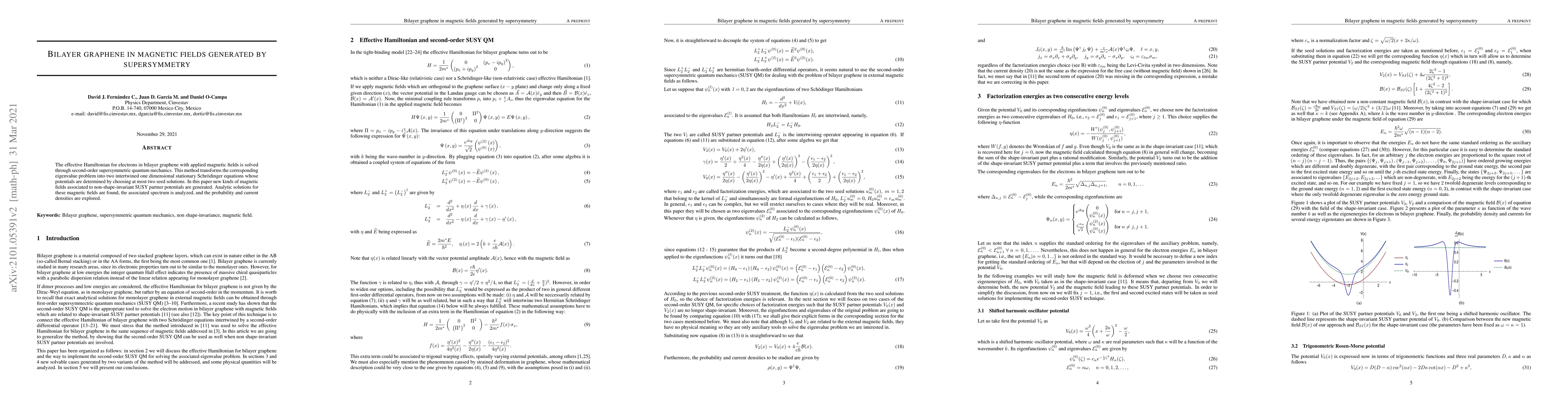 This paper utilizes second-order supersymmetric quantum mechanics to solve the effective Hamiltonian for electrons in bilayer graphene under magnetic fields, transforming the eigenvalue problem into two intertwined one-dimensional Schrödinger equations. It reveals new magnetic fields linked to non-shape-invariant SUSY partner potentials, providing analytic solutions and analyzing their spectra, probability, and current densities.