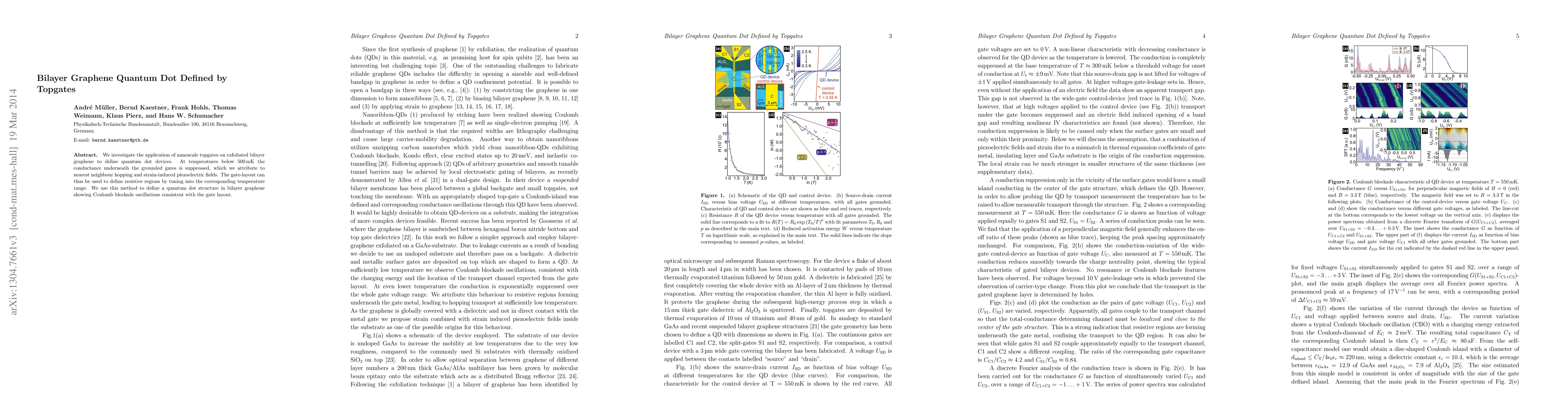 The paper presents a method for defining resistive regions and quantum dots in bilayer graphene using nanoscale topgates, attributing conductance suppression to piezoelectric fields and strain caused by thermal expansion coefficient mismatch.