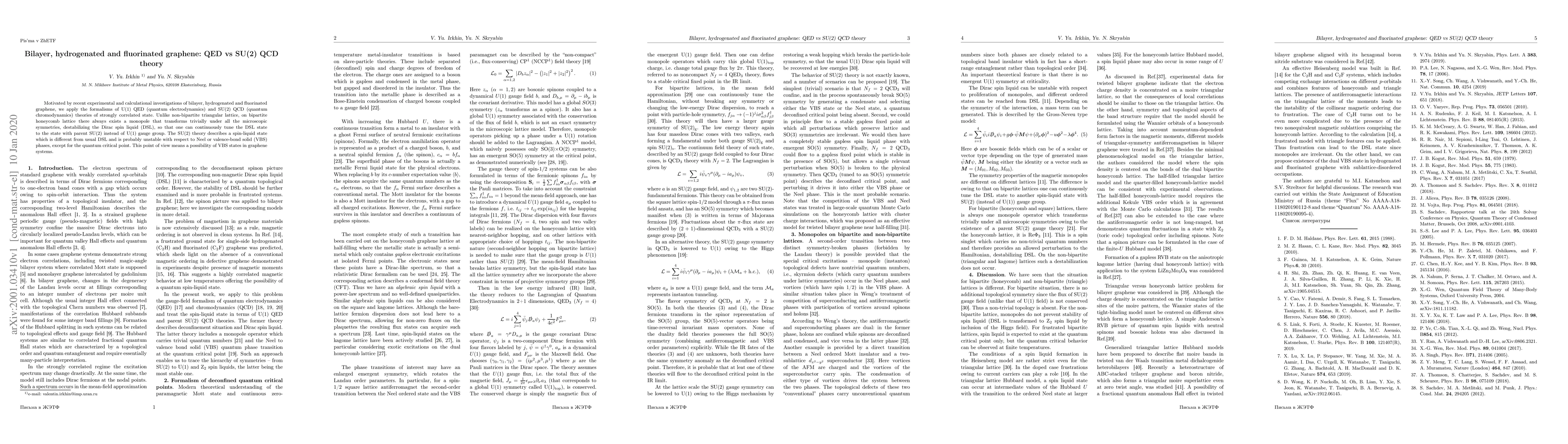 Motivated by recent experimental and calculational investigations of bilayer, hydrogenated and fluorinated graphene, we apply the formalisms of U(1) QED (quantum electrodynamics) and SU(2) QCD (quantum chromodynamics) theories of strongly correlated state. Unlike non-bipartite triangular lattice, on bipartite honeycomb lattice there always exists a monopole that transforms trivially under all the microscopic symmetries, destabilizing the Dirac spin liquid (DSL), so that one can continuously tune the DSL state to the state with parent SU(2) instead of U(1) gauge group. The SU(2) theory describes a spin-liquid state which is different from usual DSL and is probably unstable with respect to Neel or valence-bond solid (VBS) phases, except for the quantum critical point. This point of view means a possibility of VBS states in graphene systems.