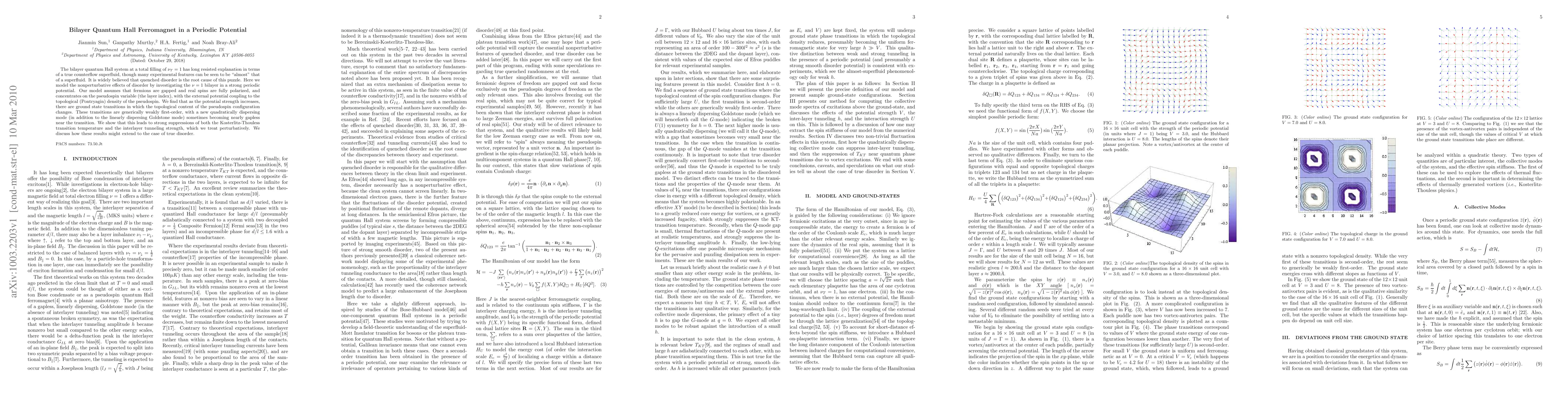This paper explores the bilayer quantum Hall system at filling $\nu_T=1$ under a strong periodic potential, revealing ground state transitions and new modes that suppress the Kosterlitz-Thouless transition temperature and interlayer tunneling. The findings suggest these effects may extend to systems with quenched disorder.
