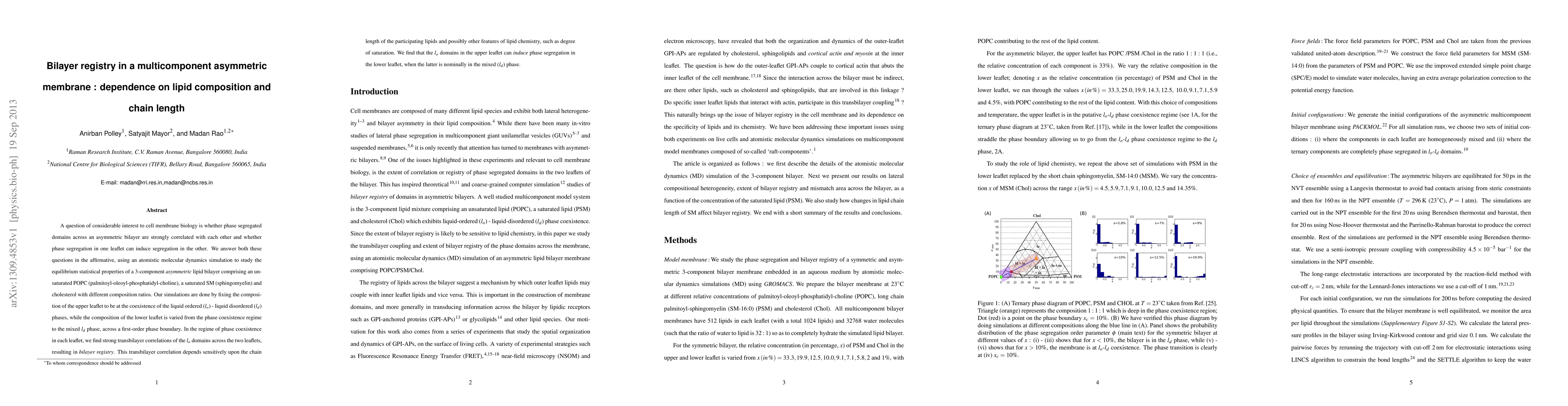 This study uses molecular dynamics simulations to demonstrate that phase segregated domains in an asymmetric bilayer are strongly correlated across leaflets, leading to bilayer registry. The transbilayer correlation is sensitive to lipid composition and chain length, with unsaturated lipids inducing segregation in the otherwise mixed phase lower leaflet.