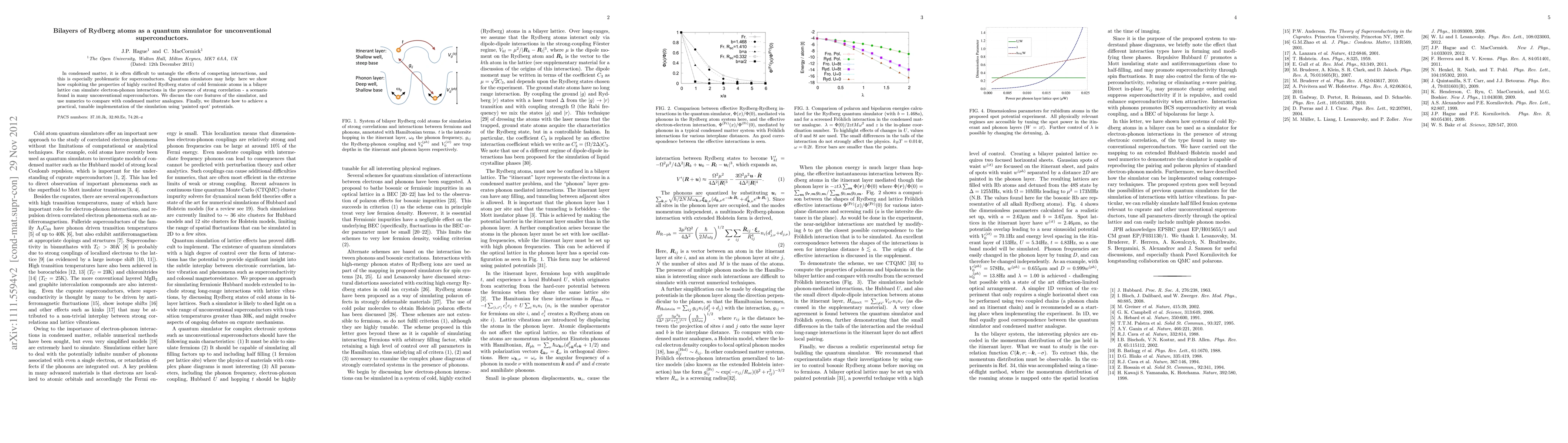 This paper demonstrates how bilayers of Rydberg atoms can serve as a quantum simulator for studying unconventional superconductors by mimicking electron-phonon interactions under strong correlation. The study uses numerics to compare the simulator's features with condensed matter systems and proposes a practical implementation using painted spot potentials.