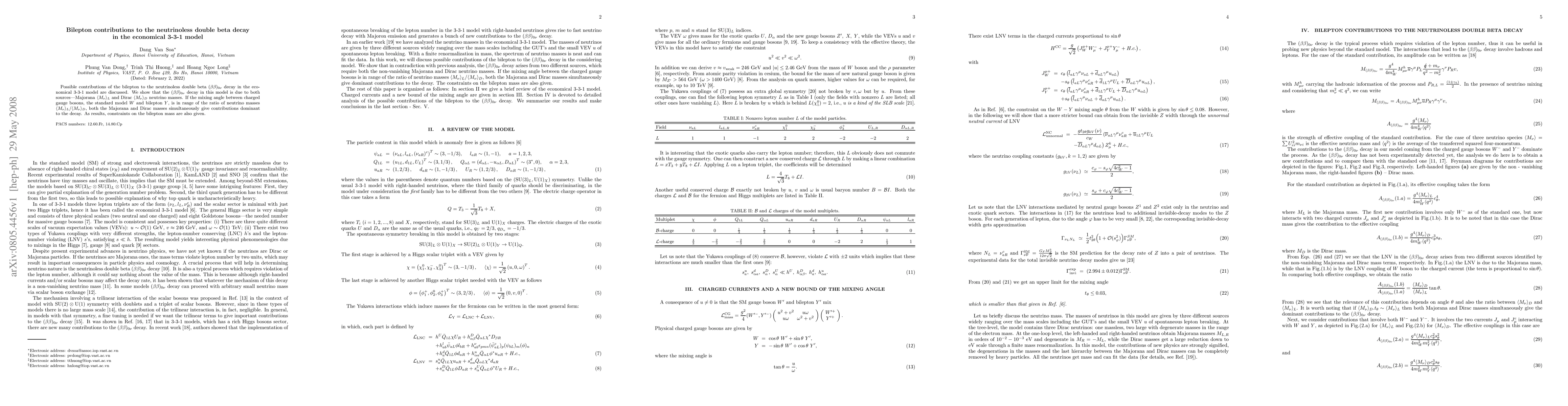 $(\beta\beta)_{0\nu}$ decay in the economical 3-3-1 model are discussed. We
