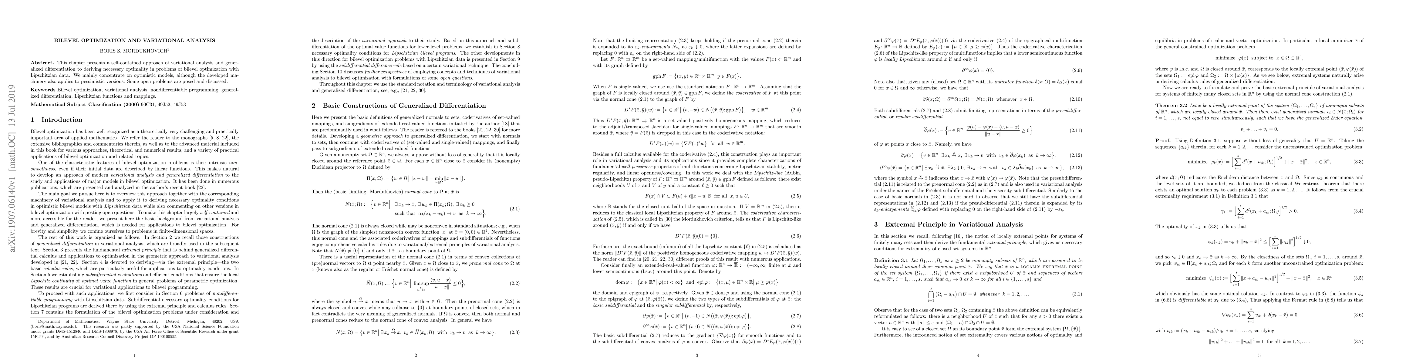This chapter presents a self-contained approach to deriving necessary optimality in bilevel optimization problems using variational analysis and generalized differentiation. It focuses on optimistic models but also applies to pessimistic versions.