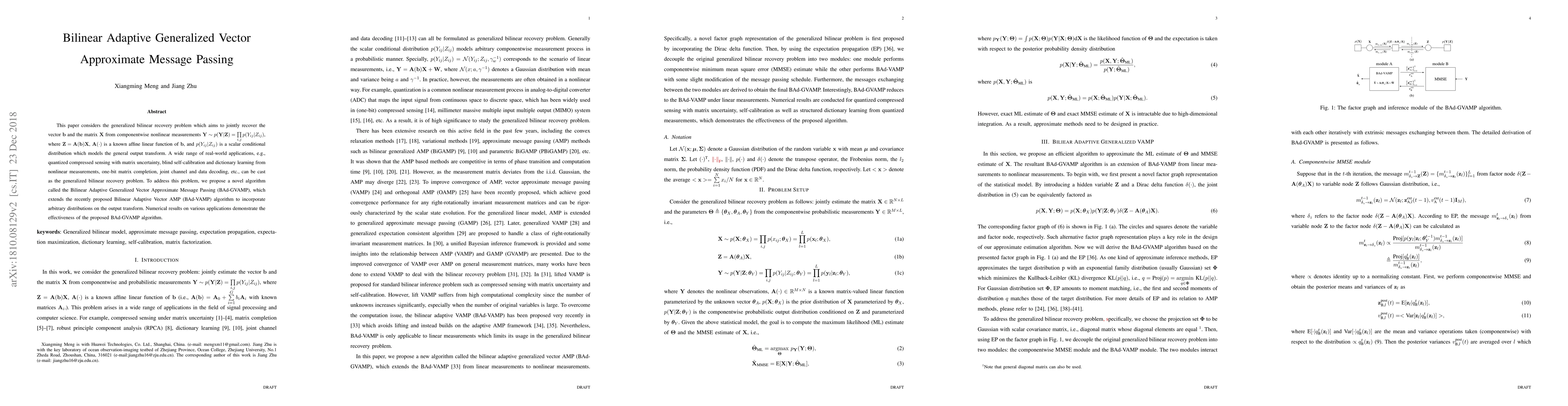 This paper proposes the Bilinear Adaptive Generalized Vector Approximate Message Passing (BAd-GVAMP) algorithm to solve the generalized bilinear recovery problem, which jointly recovers vectors and matrices from nonlinear measurements. The BAd-GVAMP extends the BAd-VAMP algorithm to handle arbitrary conditional distributions, demonstrating effectiveness across various applications.