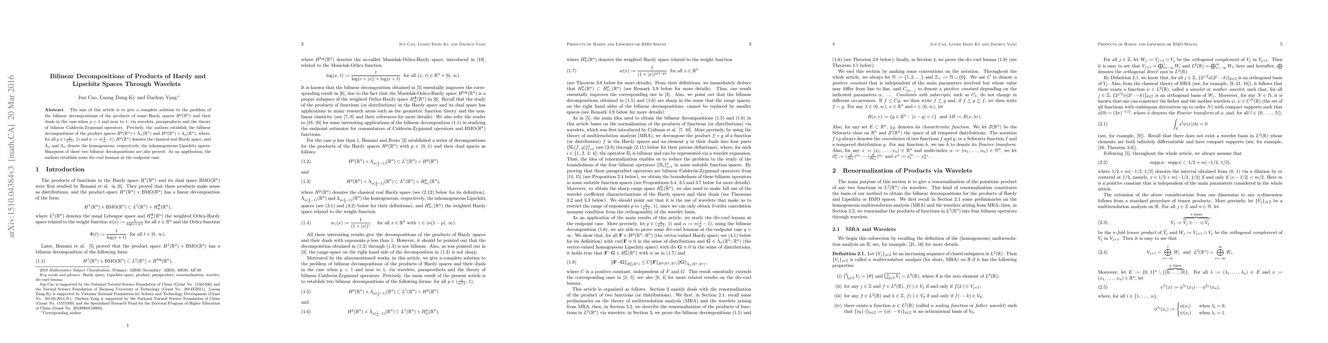 This paper presents a complete solution for bilinear decompositions of products of Hardy spaces $H^p(\mathbb{R}^n)$ and their duals using wavelets, paraproducts, and bilinear Calderón-Zygmund operators, establishing sharp decompositions for $H^p(\mathbb{R}^n)\times\dot\Lambda_{\alpha} (\mathbb{R}^n)$ and $H^p(\mathbb{R}^n)\times\Lambda_{\alpha}(\mathbb{R}^n)$. The work also includes div-curl lemmas at the endpoint case.