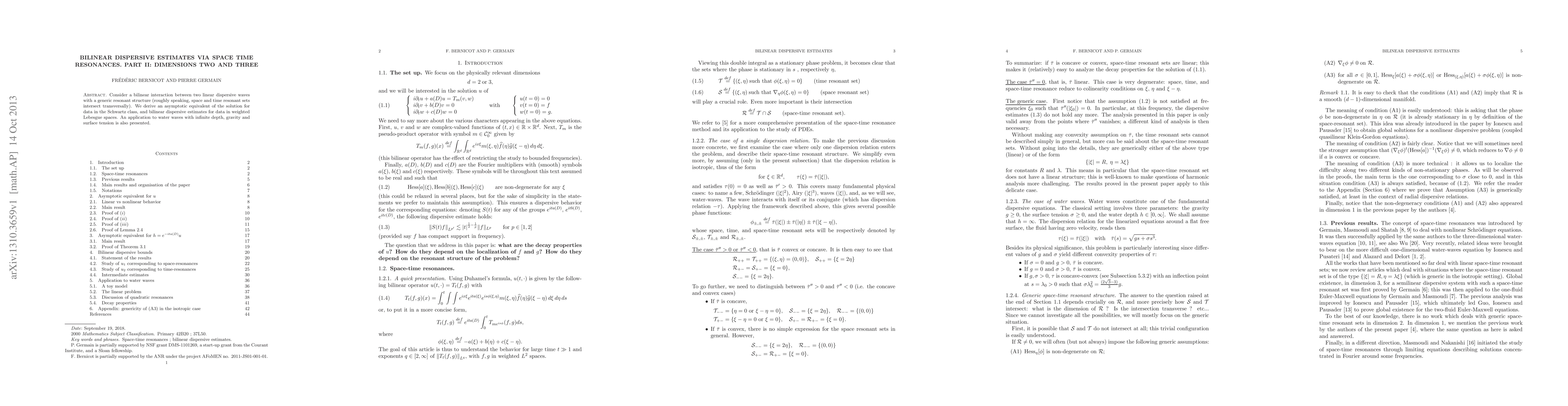 Researchers derive bilinear dispersive estimates for two-dimensional and three-dimensional waves with a generic resonant structure, leading to new insights into water wave dynamics.