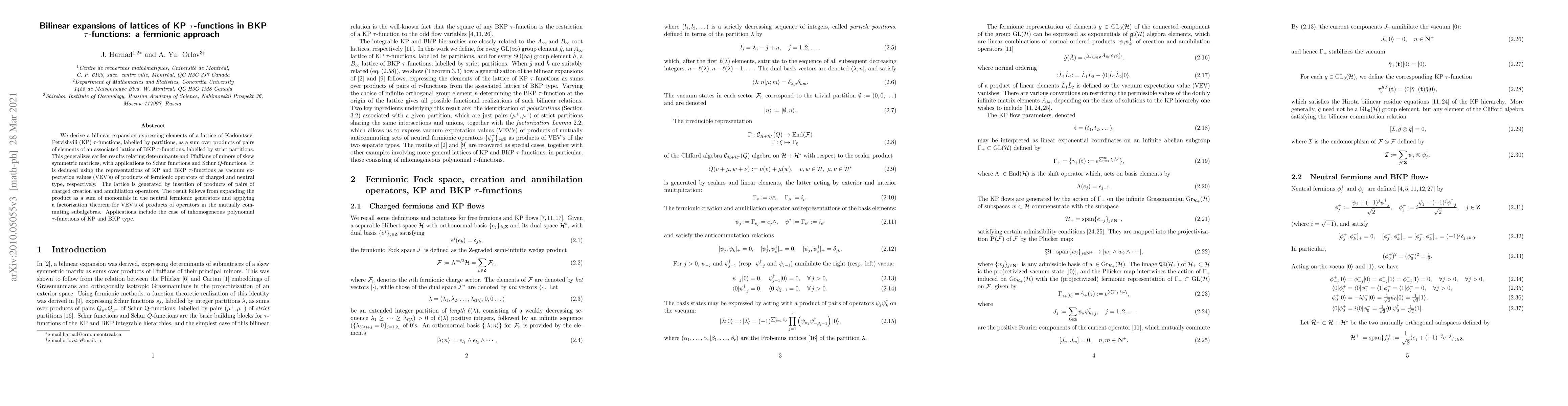 This paper derives a bilinear expansion linking KP $\tau$-functions to BKP $\tau$-functions using fermionic representations, generalizing previous results on determinants and Pfaffians. The expansion is based on vacuum expectation values of fermionic operators and has applications to Schur functions and polynomial $\tau$-functions.