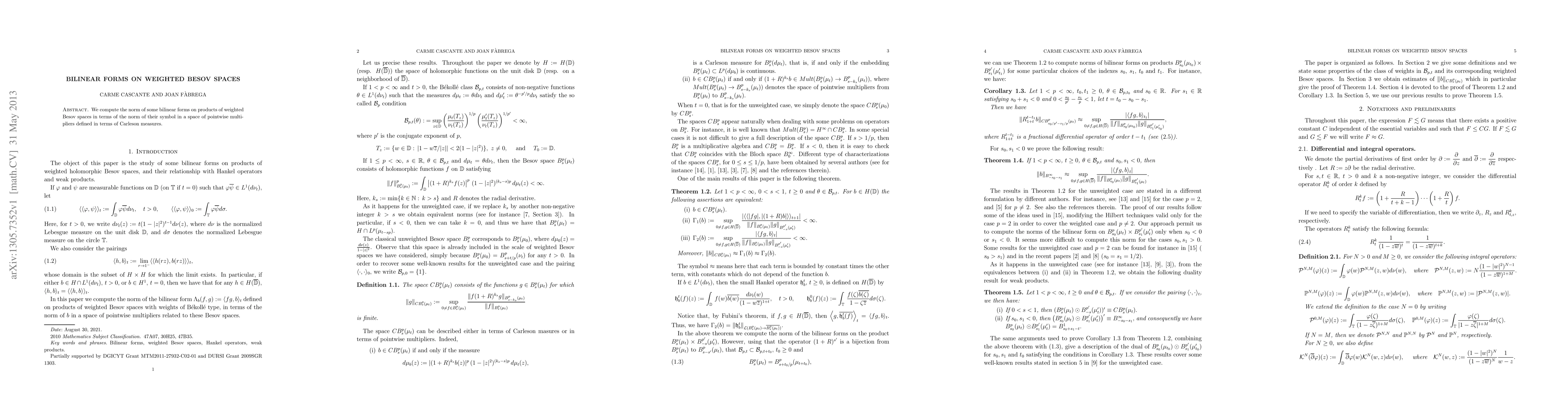 Summary: This paper determines the norm of bilinear forms on weighted Besov spaces using the norm of their symbol in a multiplier space characterized by Carleson measures. The results establish a connection between bilinear forms and pointwise multipliers in weighted Besov settings.