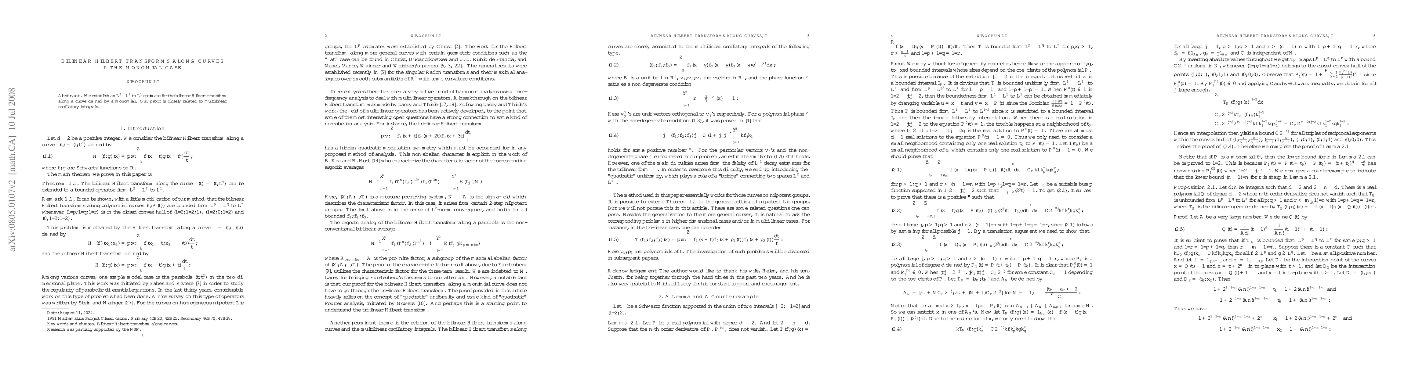 Summary: This paper establishes an L^2 × L^2 to L^1 estimate for the bilinear Hilbert transform along a curve defined by a monomial, with the proof relying on techniques from multi-linear oscillatory integrals.