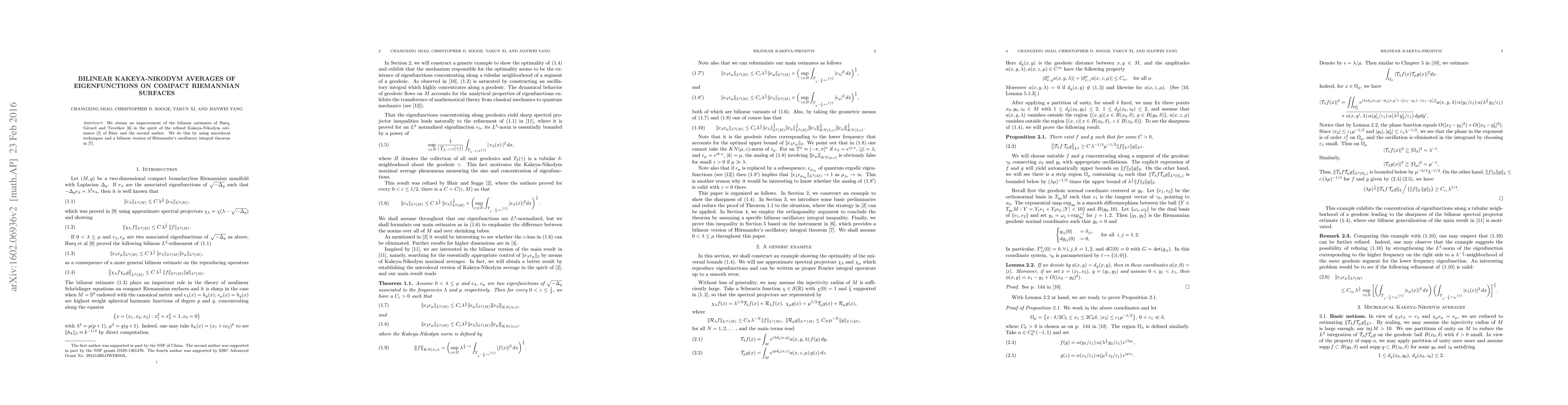 Summary: This paper improves bilinear estimates for eigenfunctions on compact Riemannian surfaces, leveraging microlocal techniques and a bilinear version of Hörmander's oscillatory integral theorem, inspired by refined Kakeya-Nikodym estimates from previous work.