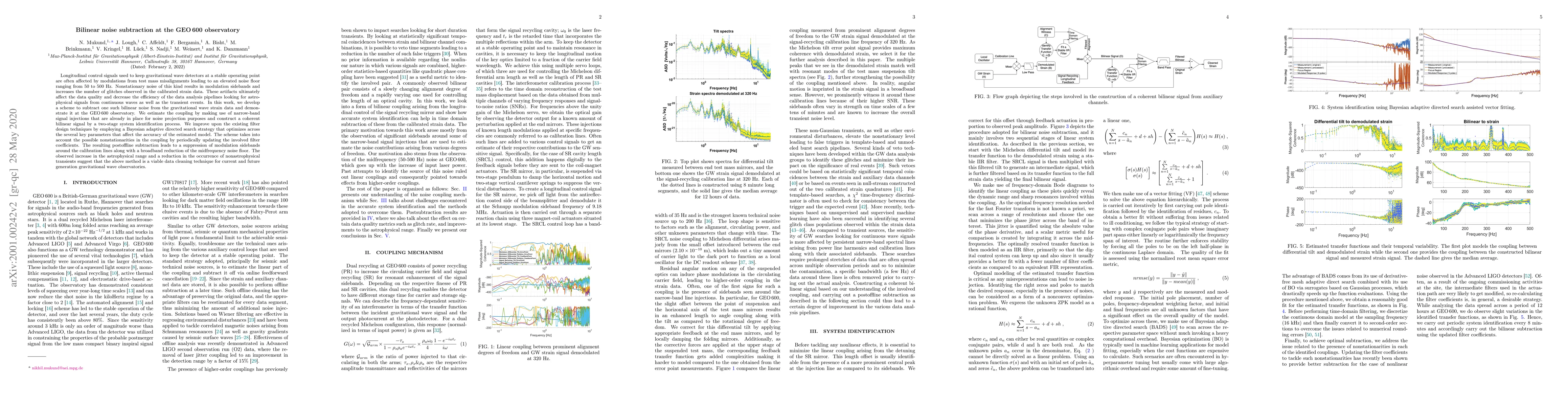 Researchers developed a method to subtract bilinear noise from gravitational wave strain data at the GEO 600 observatory, leading to improved astrophysical signal detection and reduced non-astrophysical transients.