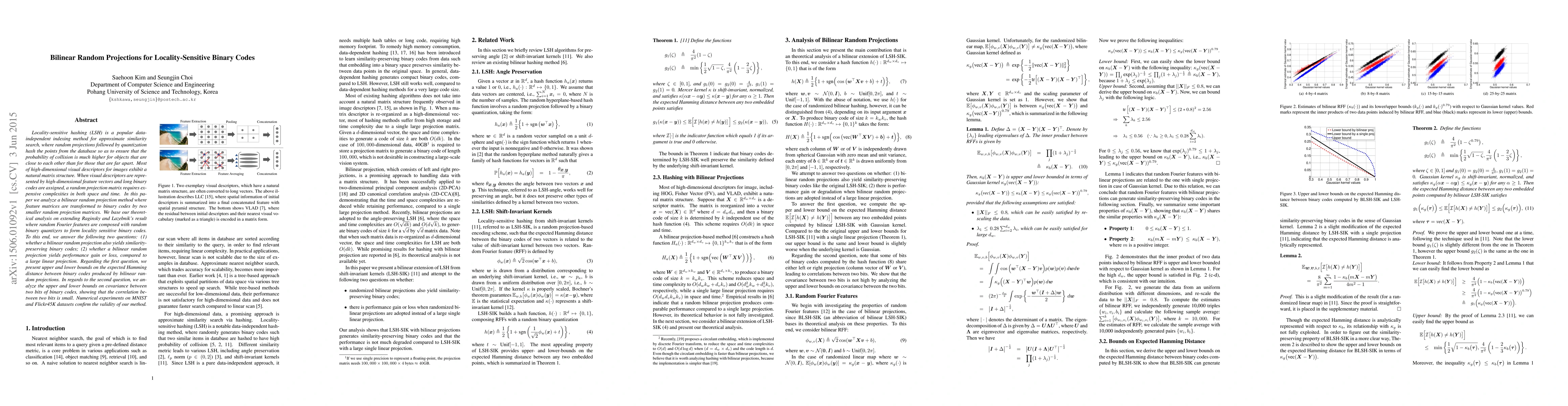 This paper introduces a bilinear random projection method for locality-sensitive binary codes, which is faster and more efficient than traditional methods while maintaining similar performance.