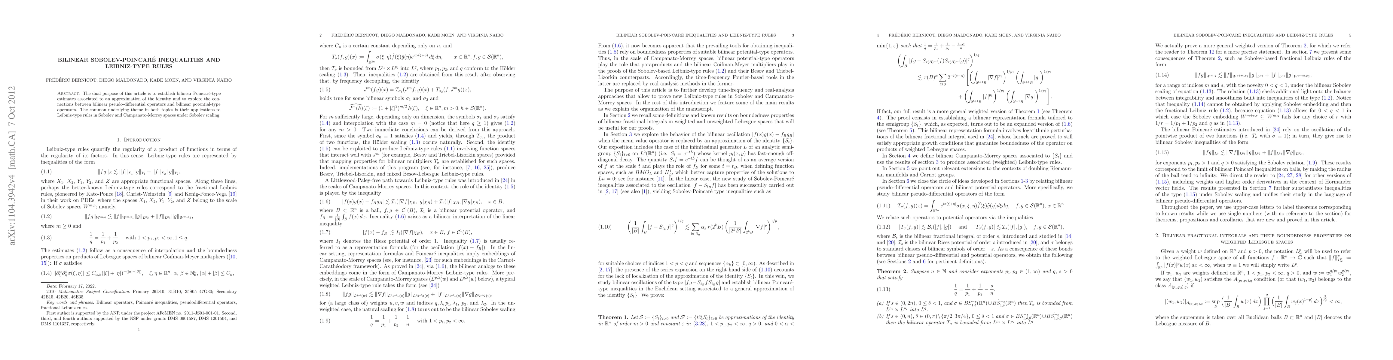 This paper establishes bilinear Poincare-type estimates and explores the relationship between bilinear pseudo-differential and potential-type operators. It applies these findings to derive Leibniz-type rules in Sobolev and Campanato-Morrey spaces under Sobolev scaling.