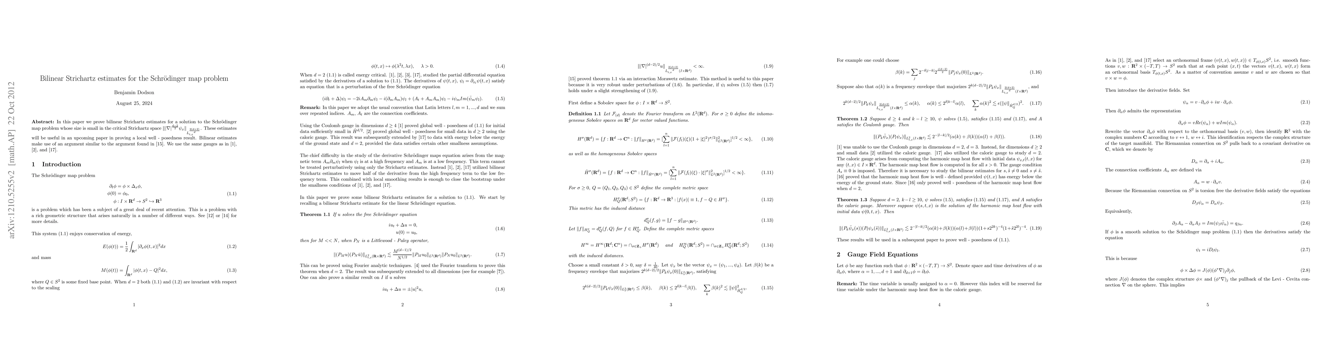 This paper establishes bilinear Strichartz estimates for solutions to the Schrödinger map problem, focusing on solutions with small size in the critical Strichartz space. These estimates are instrumental in proving local well-posedness results and utilize arguments similar to those found in Planchon and Vega (2009).
