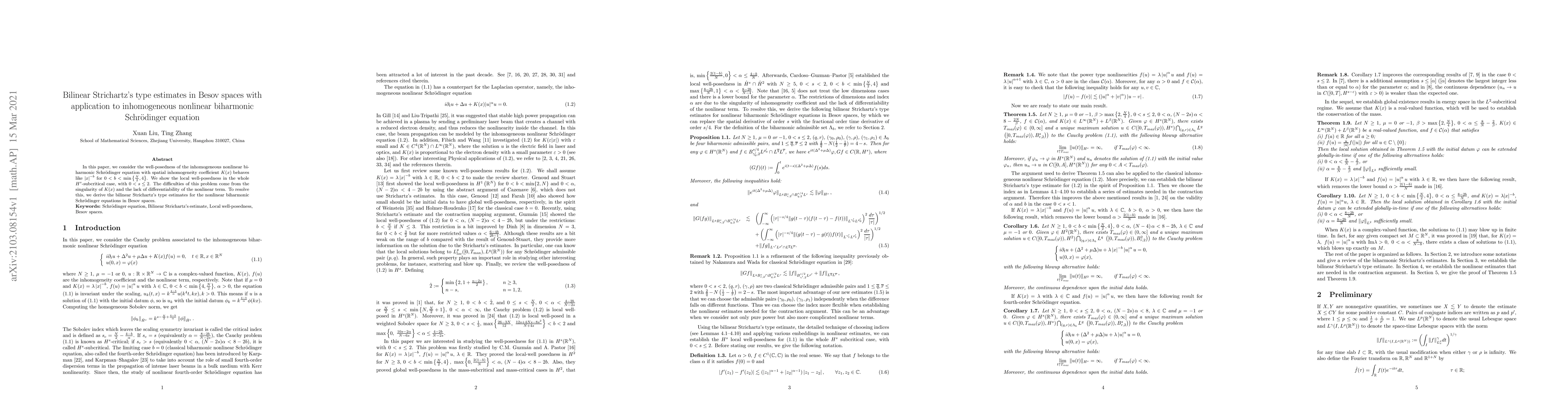 This research paper investigates the well-posedness of an inhomogeneous nonlinear biharmonic Schr"odinger equation and develops bilinear Strichartz type estimates for it in Besov spaces, resolving difficulties from singularities and lack of differentiability.