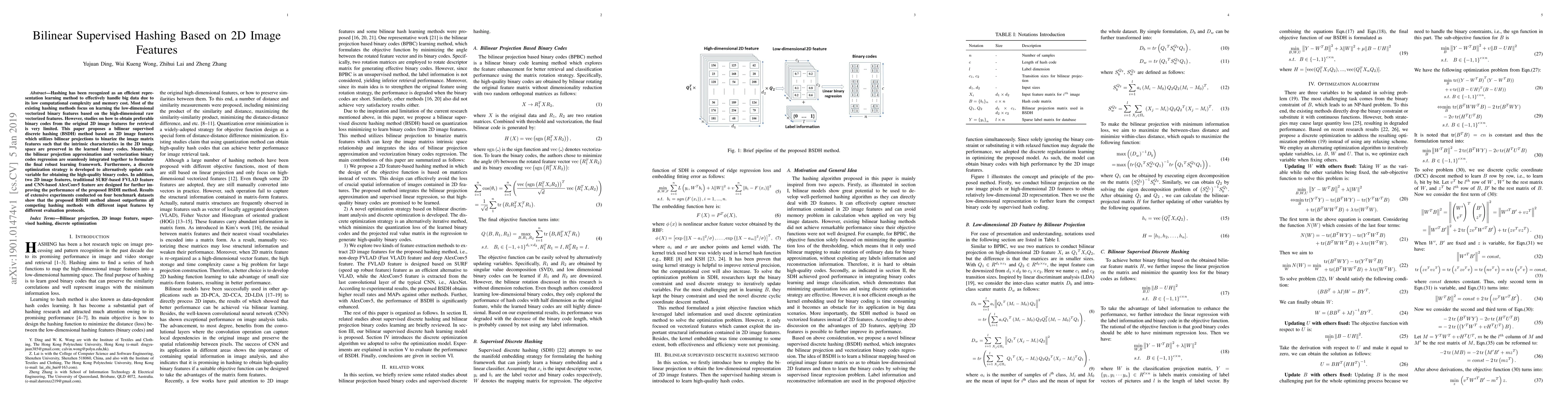 Hashing has been recognized as an efficient representation learning method to effectively handle big data due to its low computational complexity and memory cost. Most of the existing hashing methods focus on learning the low-dimensional vectorized binary features based on the high-dimensional raw vectorized features. However, studies on how to obtain preferable binary codes from the original 2D image features for retrieval is very limited. This paper proposes a bilinear supervised discrete hashing (BSDH) method based on 2D image features which utilizes bilinear projections to binarize the image matrix features such that the intrinsic characteristics in the 2D image space are preserved in the learned binary codes. Meanwhile, the bilinear projection approximation and vectorization binary codes regression are seamlessly integrated together to formulate the final robust learning framework. Furthermore, a discrete optimization strategy is developed to alternatively update each variable for obtaining the high-quality binary codes. In addition, two 2D image features, traditional SURF-based FVLAD feature and CNN-based AlexConv5 feature are designed for further improving the performance of the proposed BSDH method. Results of extensive experiments conducted on four benchmark datasets show that the proposed BSDH method almost outperforms all competing hashing methods with different input features by different evaluation protocols.