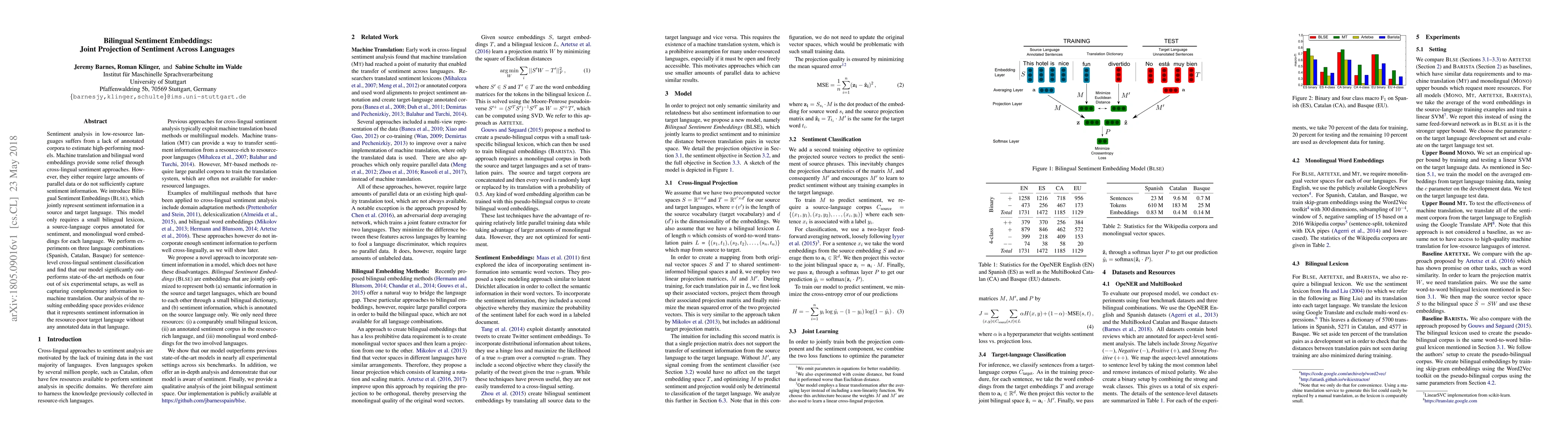 The paper introduces Bilingual Sentiment Embeddings (BLSE) to address the lack of annotated data for sentiment analysis in low-resource languages. BLSE jointly projects sentiment across languages using minimal bilingual lexicon, a sentiment-annotated source-language corpus, and monolingual word embeddings, achieving better performance than existing methods.