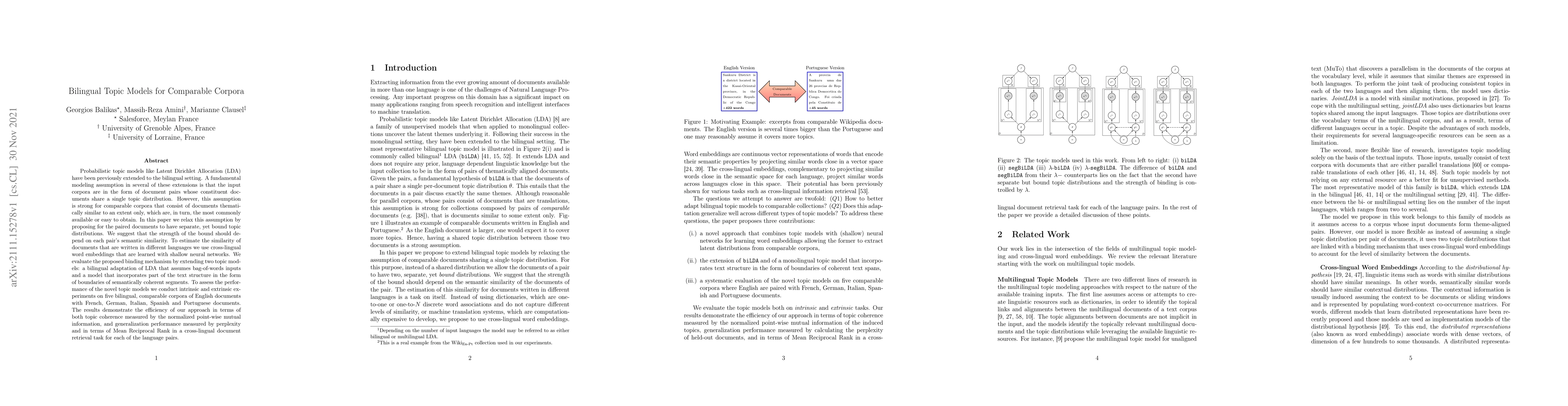 This paper proposes a novel bilingual topic model for comparable corpora, relaxing the assumption that paired documents share a single topic distribution. Instead, it introduces separate, yet bound topic distributions for paired documents, with the strength of the bound determined by their semantic similarity, estimated using cross-lingual word embeddings. The approach is evaluated on five bilingual corpora, showing improved topic coherence and performance in cross-lingual document retrieval.