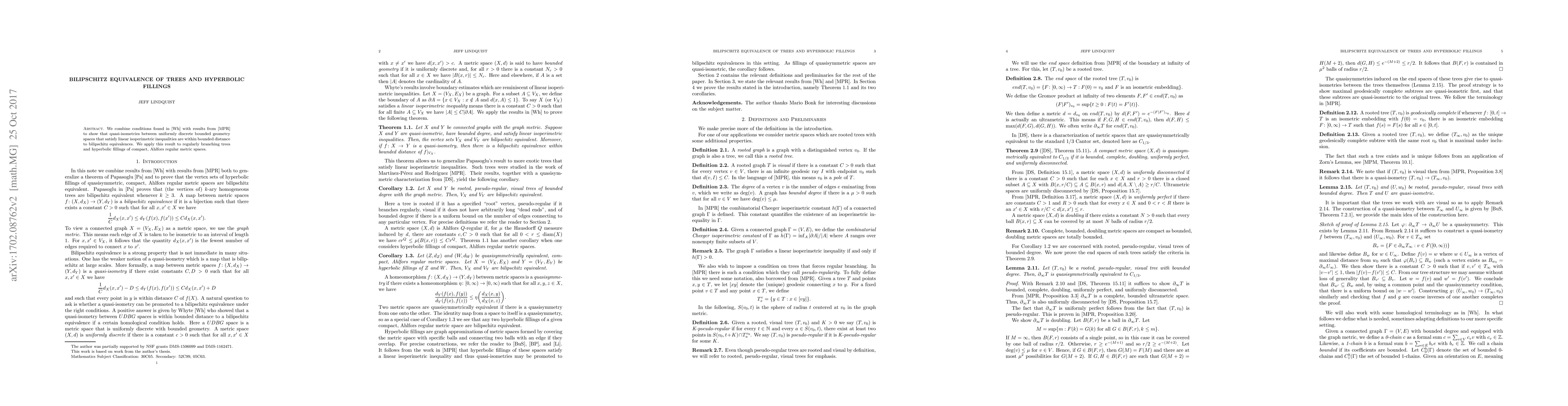 Researchers show that certain spaces with specific geometric properties can be transformed into bilipschitz equivalent spaces within a limited distance, which has implications for understanding the structure of trees and hyperbolic fillings.