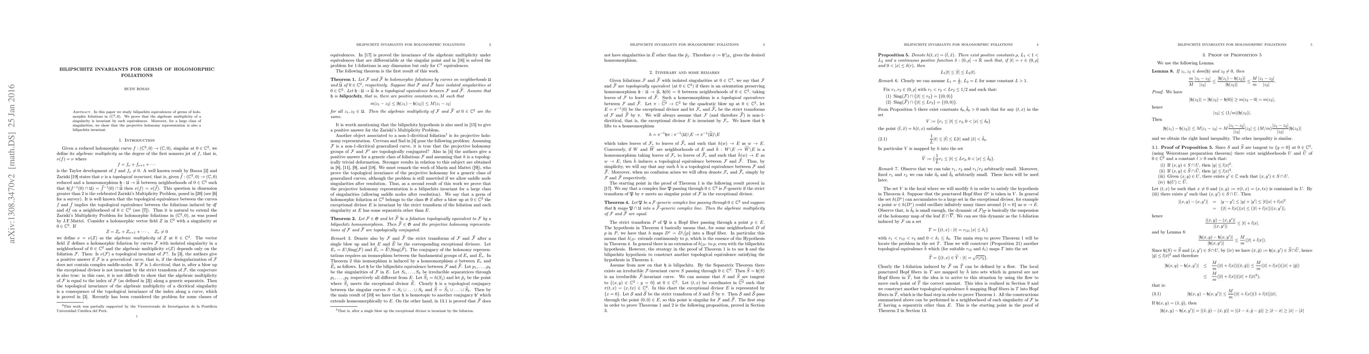 This paper investigates bilipschitz equivalences of holomorphic foliations in $(\mathbb{C}^2,0)$, proving that the algebraic multiplicity of singularities is invariant under such equivalences. Additionally, it demonstrates that the projective holonomy representation is a bilipschitz invariant for a broad class of singularities.