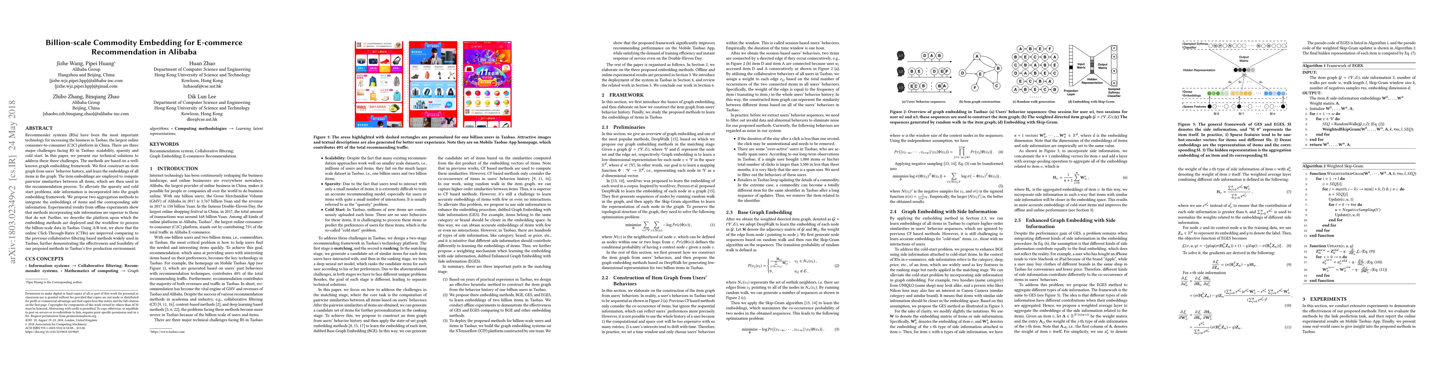 This paper presents scalable graph embedding techniques for Alibaba's Taobao RS to tackle challenges like scalability, sparsity, and cold start. The proposed methods integrate side information to enhance item embeddings, leading to improved online Click-Through-Rate (CTR) in live production.