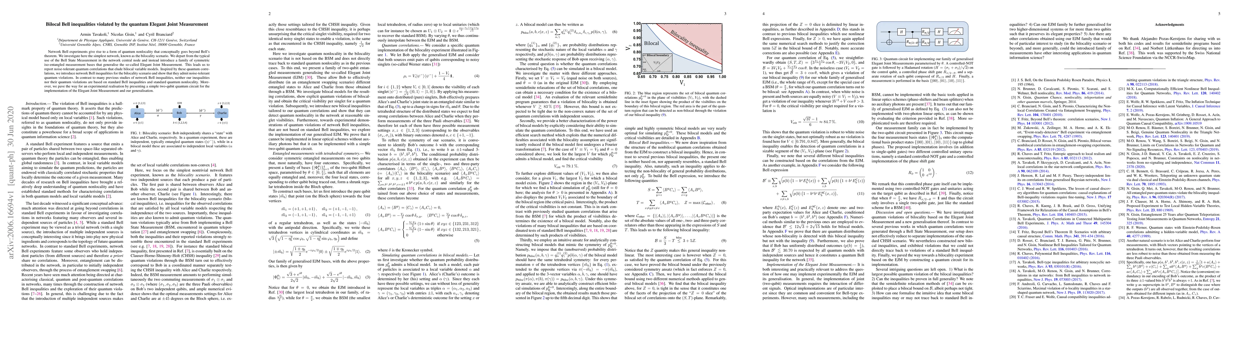 Network Bell experiments give rise to a form of quantum nonlocality that conceptually goes beyond Bell's theorem. We investigate here the simplest network, known as the bilocality scenario. We depart from the typical use of the Bell State Measurement in the network central node and instead introduce a family of symmetric iso-entangled measurement bases that generalise the so-called Elegant Joint Measurement. This leads us to report noise-tolerant quantum correlations that elude bilocal variable models. Inspired by these quantum correlations, we introduce network Bell inequalities for the bilocality scenario and show that they admit noise-tolerant quantum violations. In contrast to many previous studies of network Bell inequalities, neither our inequalities nor their quantum violations are based on standard Bell inequalities and standard quantum nonlocality. Moreover, we pave the way for an experimental realisation by presenting a simple two-qubit quantum circuit for the implementation of the Elegant Joint Measurement and our generalisation.