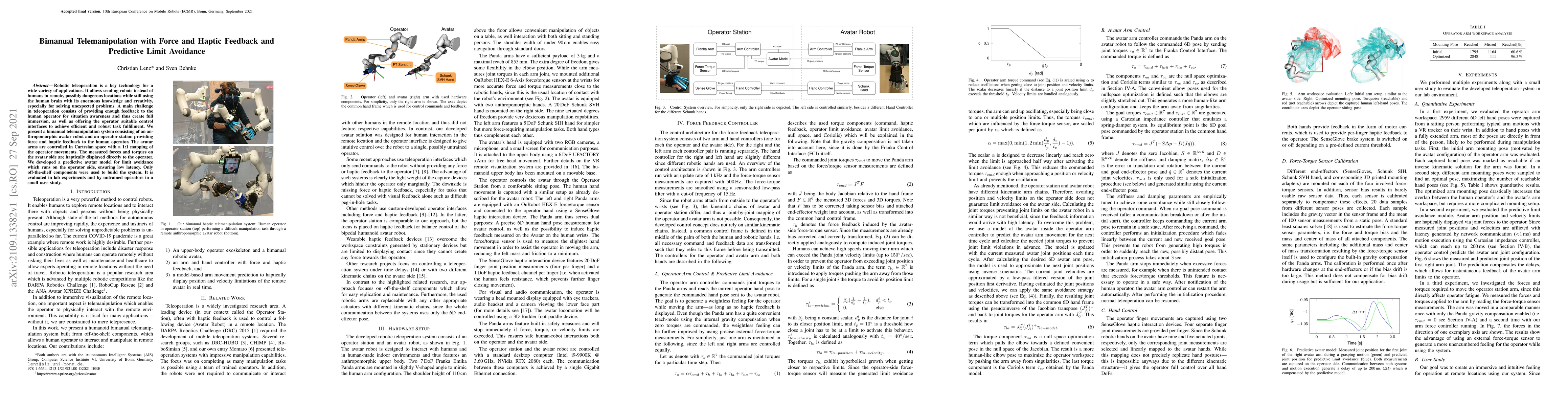 This paper presents a bimanual telemanipulation system that uses force and haptic feedback to enhance human operator immersion, along with a predictive model for limit avoidance to ensure efficient task execution. The system employs off-the-shelf components and was evaluated in lab experiments and a small user study with untrained operators.