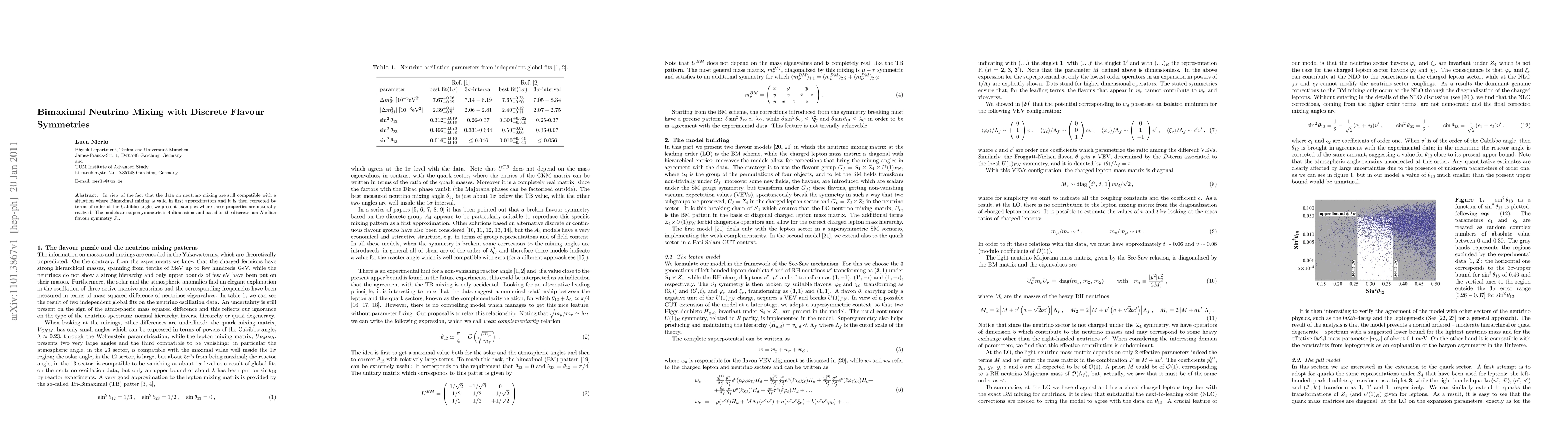 In view of the fact that the data on neutrino mixing are still compatible with a situation where Bimaximal mixing is valid in first approximation and it is then corrected by terms of order of the Cabibbo angle, we present examples where these properties are naturally realized. The models are supersymmetric in 4-dimensions and based on the discrete non-Abelian flavour symmetry S4.