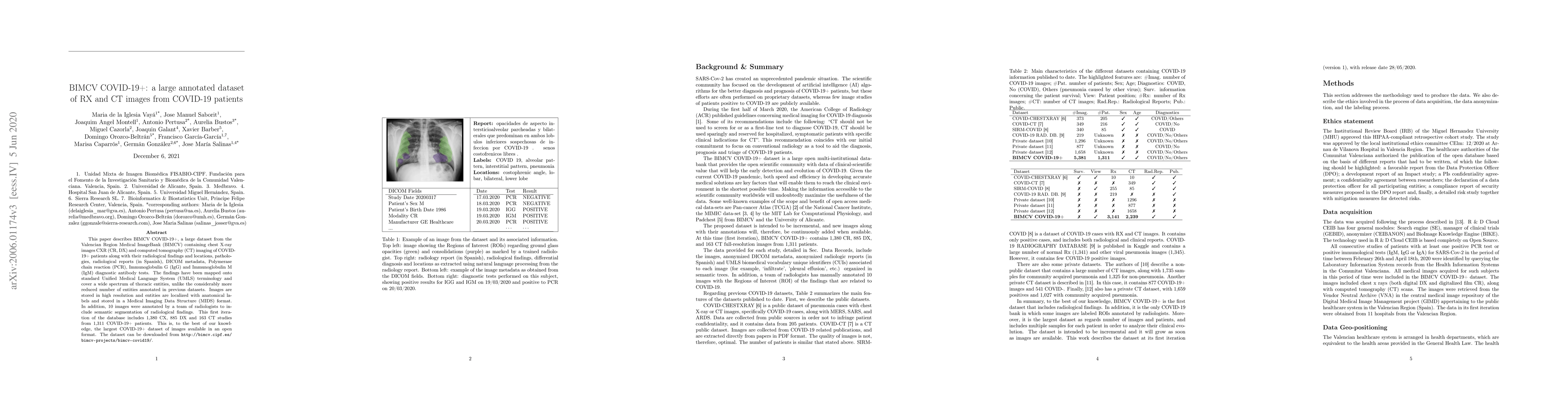This research introduces BIMCV COVID-19+, the largest open dataset of chest X-ray and CT images from COVID-19 patients, including detailed annotations and radiological findings. It aims to support medical research and AI development for COVID-19 diagnosis and analysis.