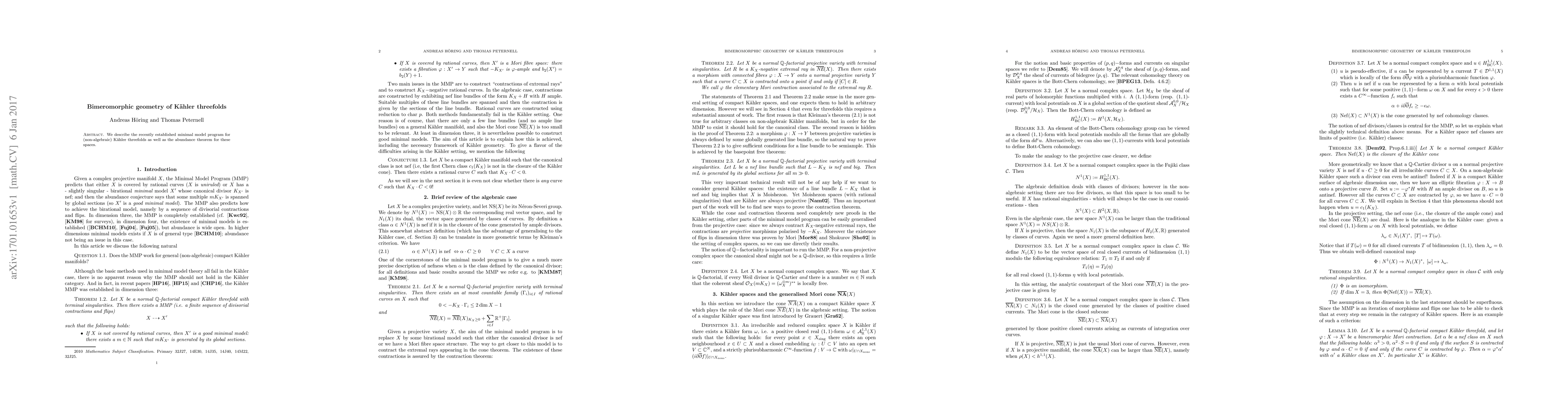 Summary: This paper outlines the newly developed minimal model program for non-algebraic Kähler threefolds and presents the abundance theorem for these geometric spaces.