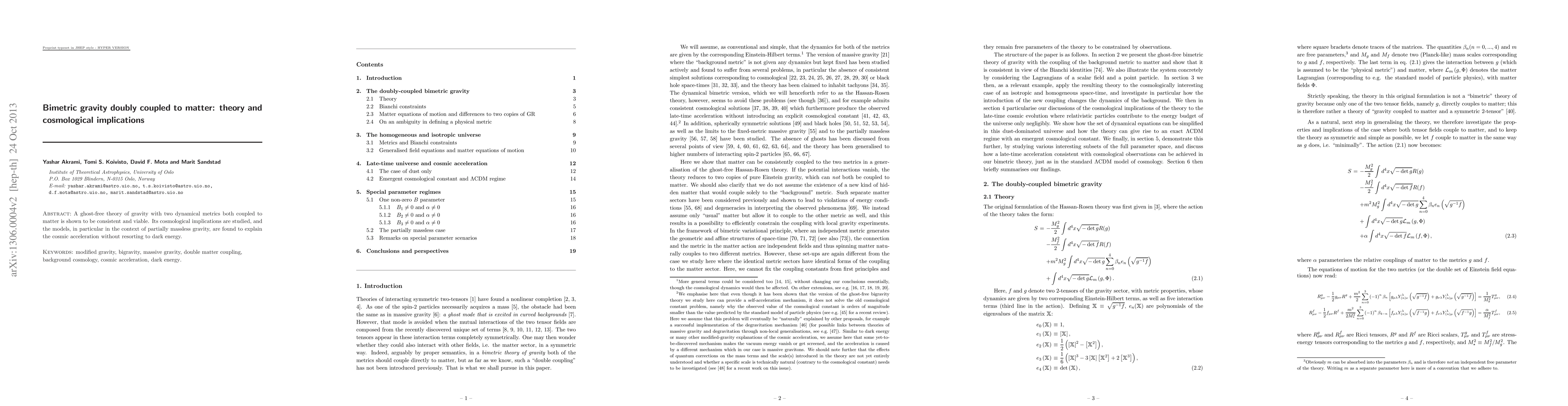 A new theory of gravity, combining two metrics coupled to matter, explains cosmic acceleration without dark energy, offering a ghost-free alternative.
