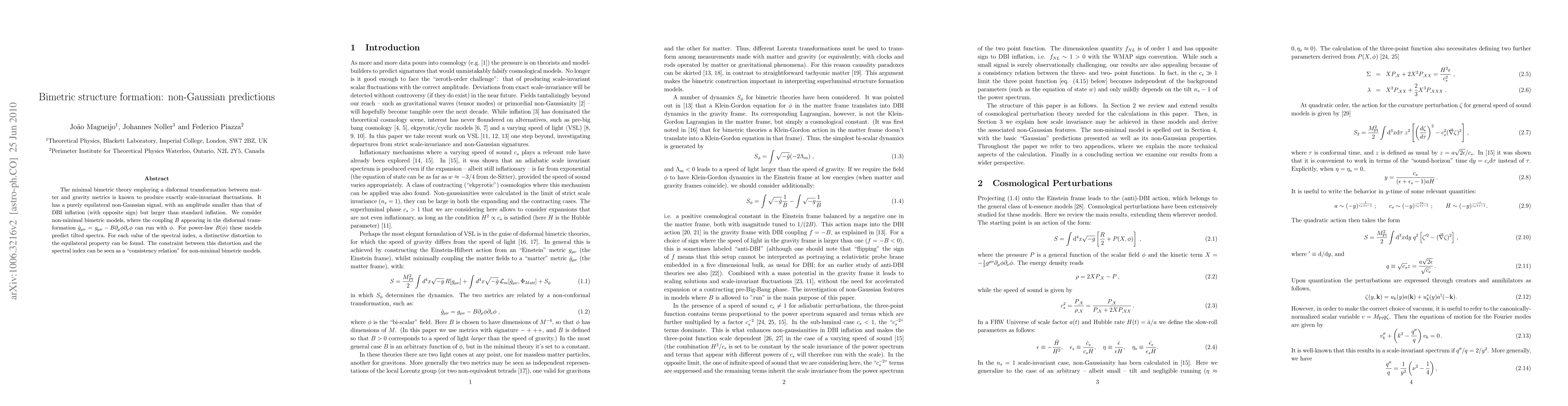 The minimal bimetric theory employing a disformal transformation between matter and gravity metrics is known to produce exactly scale-invariant fluctuations. It has a purely equilateral non-Gaussian signal, with an amplitude smaller than that of DBI inflation (with opposite sign) but larger than standard inflation. We consider non-minimal bimetric models, where the coupling $B$ appearing in the disformal transformation ${\hat g}_{\mn}= g_{\mn} -B\partial_\mu\phi\partial_\nu\phi$ can run with $\phi$. For power-law $B(\phi)$ these models predict tilted spectra. For each value of the spectral index, a distinctive distortion to the equilateral property can be found. The constraint between this distortion and the spectral index can be seen as a "consistency relation" for non-minimal bimetric models.