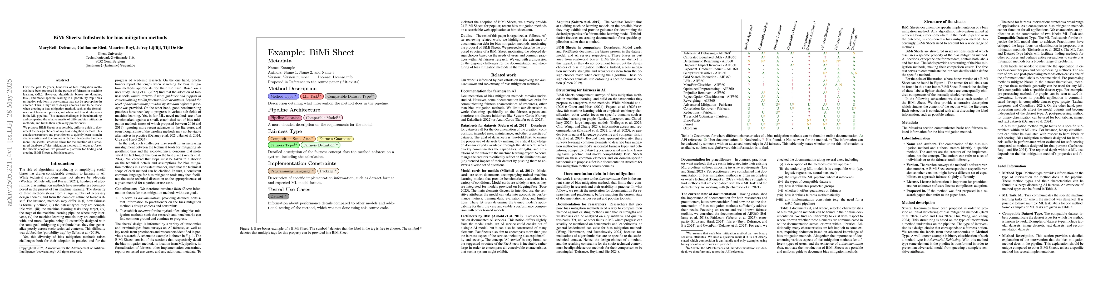 Researchers propose BiMi Sheets as a portable guide to document bias mitigation method design choices, aiming to foster adoption and comparison of fairness methods in machine learning.