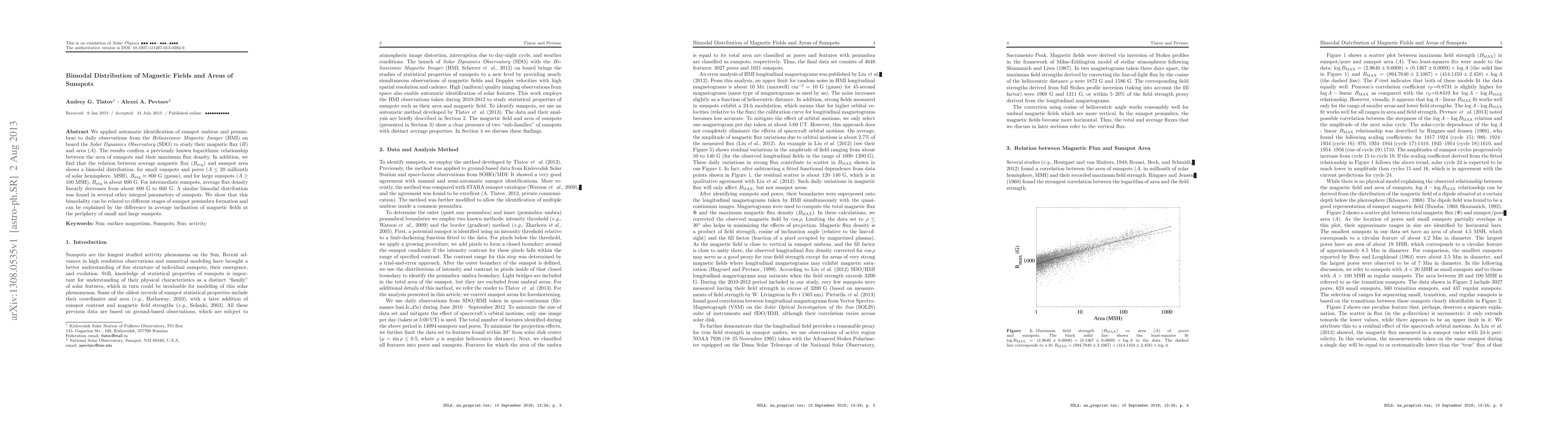 This study reveals a bimodal distribution in the average magnetic flux of sunspots, with small sunspots and pores averaging 800 G and large sunspots averaging 600 G, while intermediate sunspots show a linear decrease between these values. This bimodality correlates with different stages of sunspot penumbra formation and varying magnetic field inclinations.