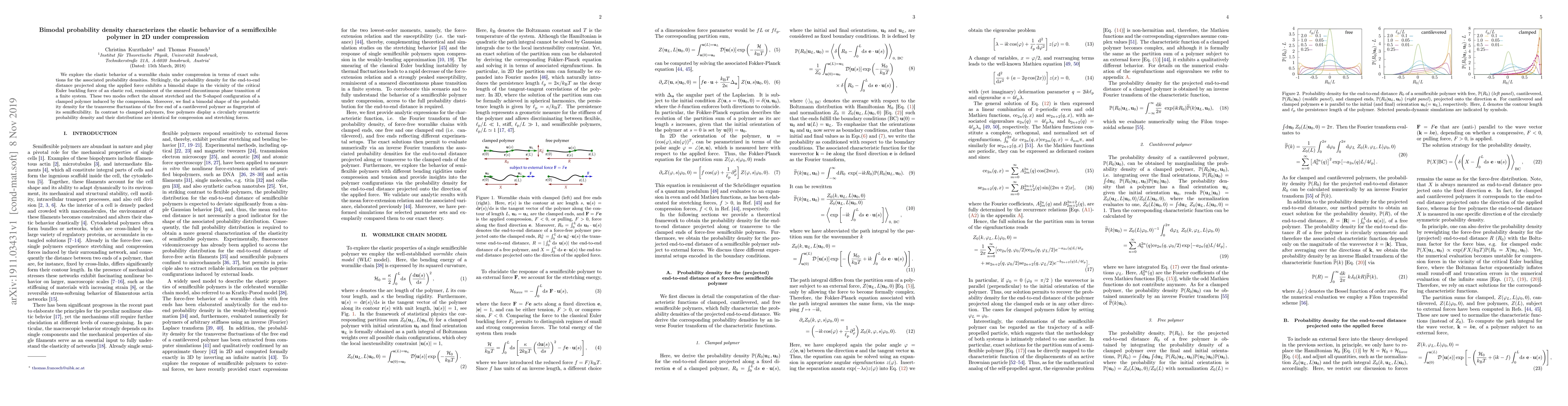 This paper investigates the elastic behavior of a semiflexible polymer under compression, revealing a bimodal probability density for both end-to-end distance and transverse fluctuations, indicative of the polymer's semiflexibility and its configurations under force. Unlike clamped polymers, free polymers show circularly symmetric distributions regardless of compression or stretching.