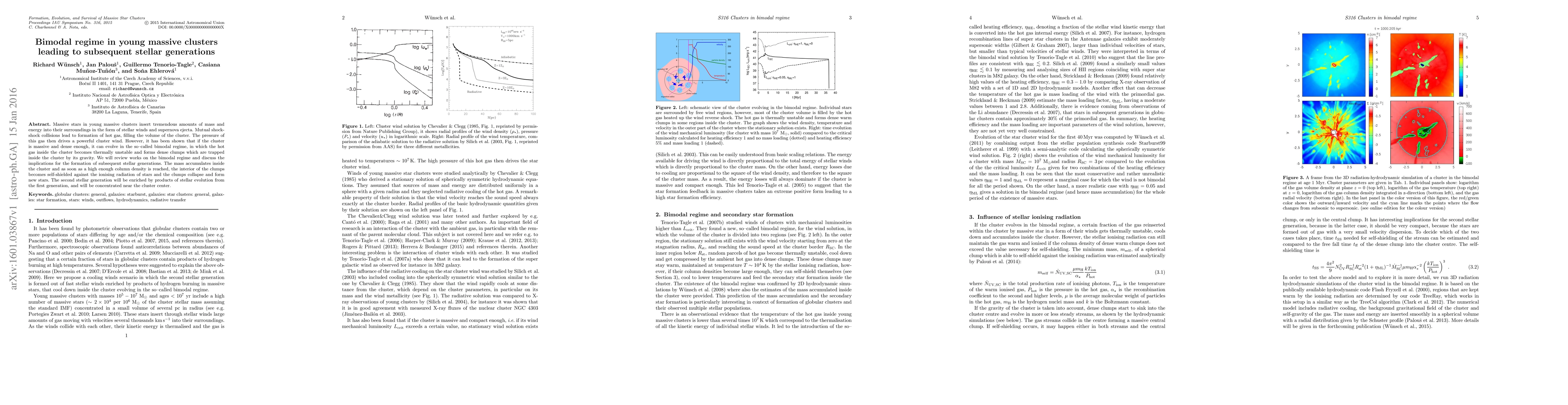 This paper reviews the bimodal regime in young massive clusters, where hot gas becomes thermally unstable, forming dense clumps that eventually collapse to create a second generation of stars enriched by the first generation's stellar evolution products. The cluster wind and gravity play crucial roles in this process.