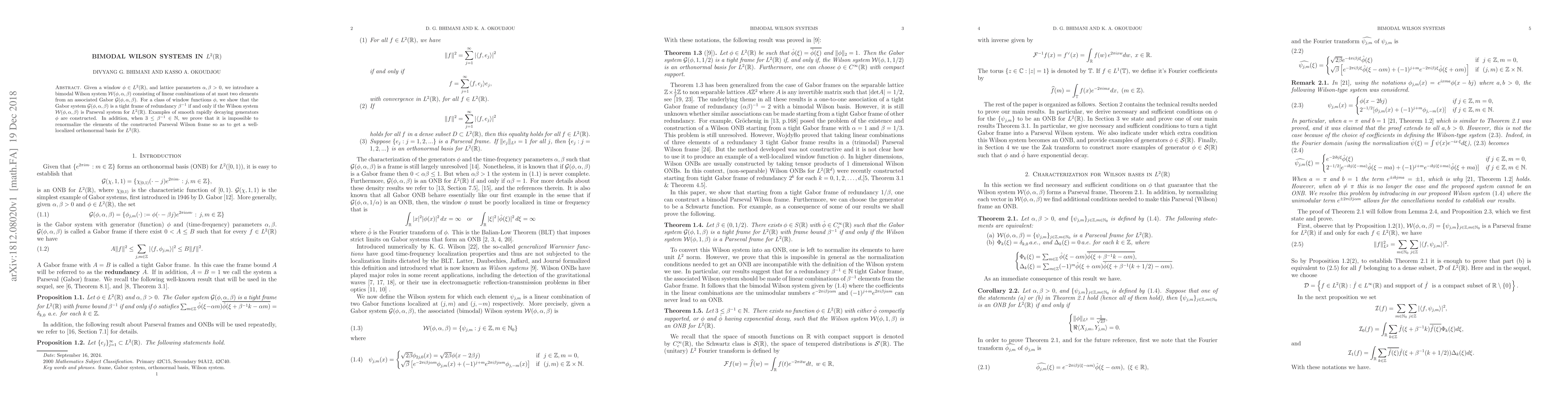 This paper introduces bimodal Wilson systems derived from Gabor systems and demonstrates a tight frame equivalence between them under certain conditions. It also proves the impossibility of converting certain Parseval Wilson frames into well-localized orthonormal bases.