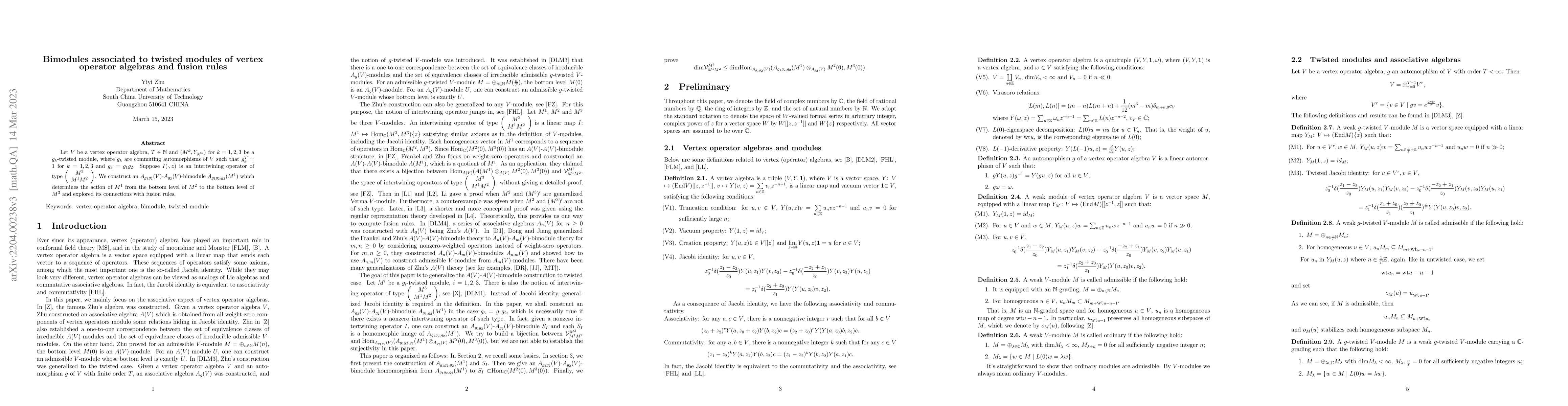 This paper constructs an $A_{g_1g_2}(V)$-$A_{g_2}(V)$-bimodule $A_{g_1g_2, g_2}(M^1)$ from $g_k$-twisted modules of a vertex operator algebra $V$ and explores its connections to fusion rules, determining the action between different module levels.