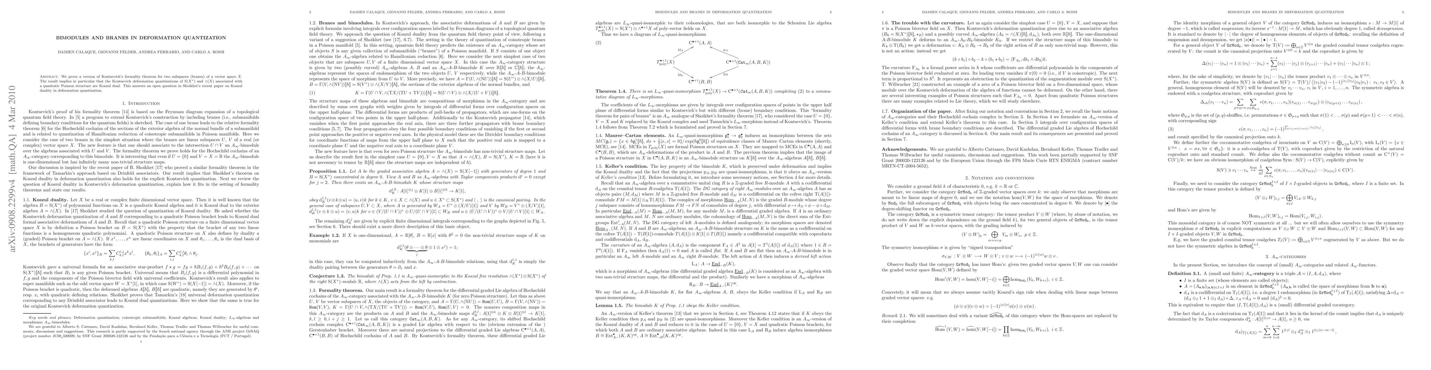 The paper proves Kontsevich's formality theorem for two subspaces (branes) of a vector space, showing that the associated deformation quantizations are Koszul dual, addressing a question posed in Shoikhet's work on Koszul duality.
