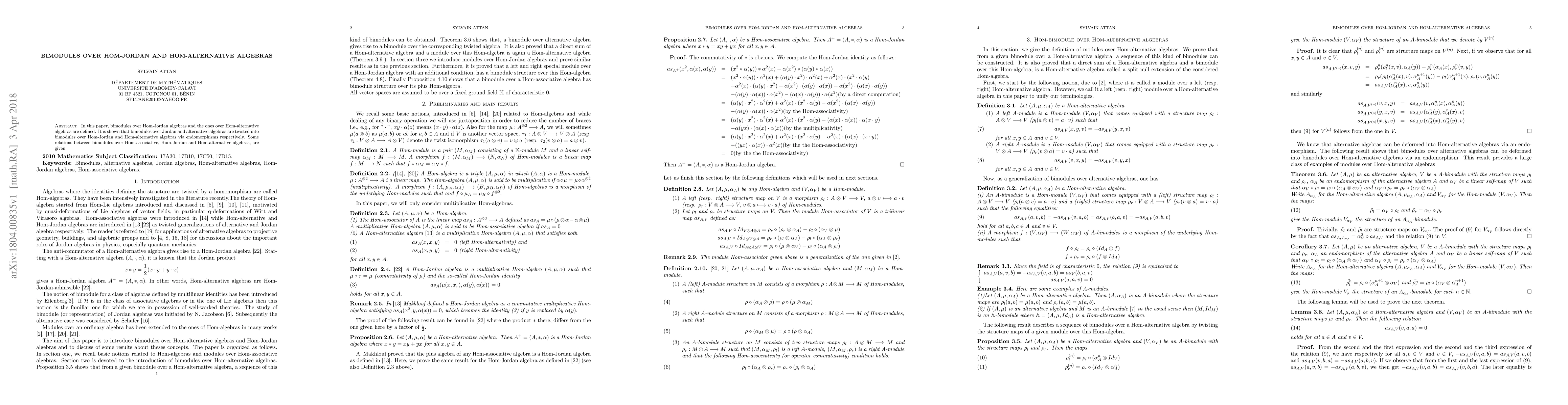 In this paper, bimodules over Hom-Jordan algebras and the ones over Hom-alternative algebras are defined. It is shown that bimodules over Jordan and alternative algebras are twisted into bimodules over Hom-Jordan and Hom-alternative algebras via endomorphisms respectively. Some relations between bimodules over Hom-associative, Hom-Jordan and Hom-alternative algebras, are given.