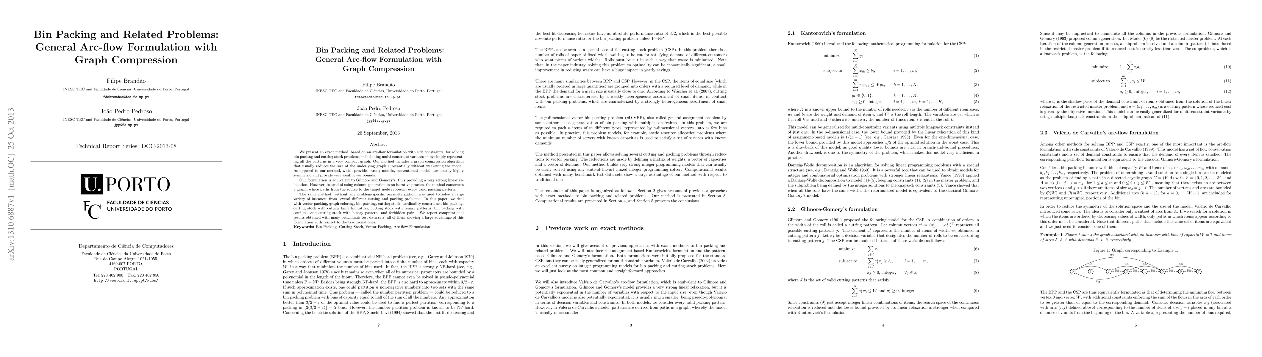 This paper introduces an exact method using an arc-flow formulation with a graph compression technique to efficiently solve various bin packing and cutting stock problems, demonstrating substantial computational advantages over conventional models. The method effectively represents all patterns in a compact graph and provides strong lower bounds.
