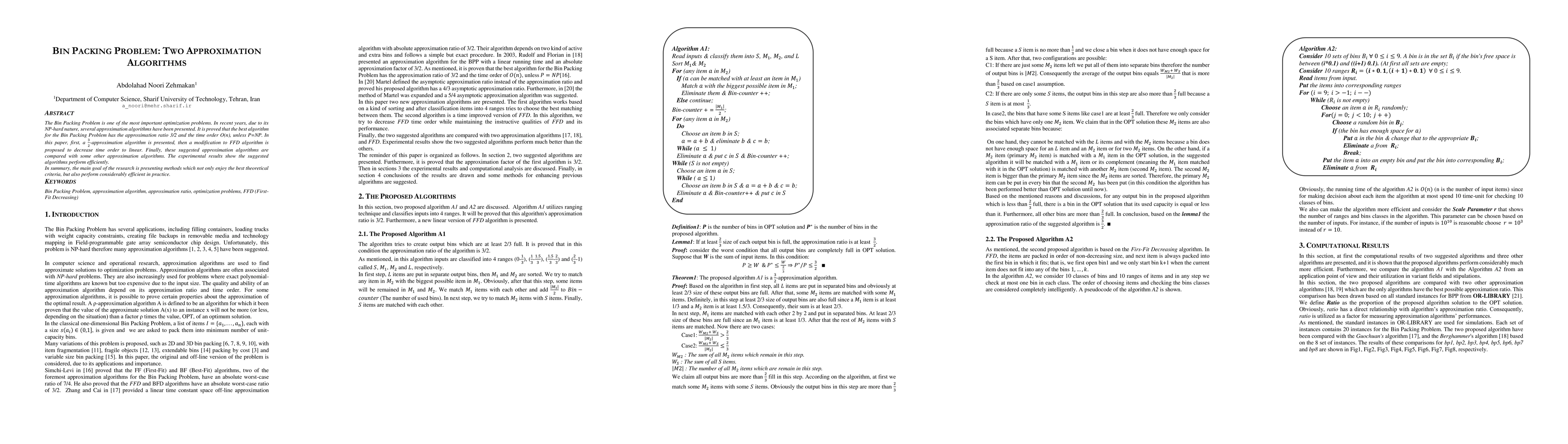 This paper introduces a 3/2-approximation algorithm and a modified FFD algorithm for the Bin Packing Problem, aiming to achieve the best theoretical approximation ratio with reduced time complexity. Experimental results demonstrate the efficiency of these proposed algorithms in practical applications.