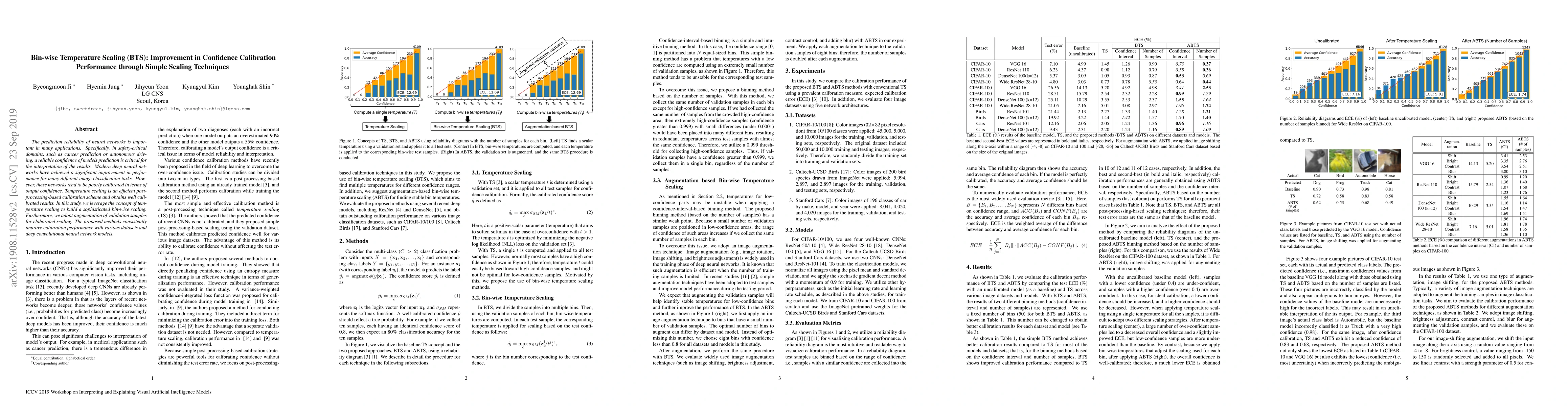 The paper proposes Bin-wise Temperature Scaling (BTS) to enhance the calibration of neural network predictions, particularly in safety-critical applications. BTS improves upon traditional temperature scaling through a more nuanced bin-wise approach and validation sample augmentation, achieving better calibration across various datasets and models.