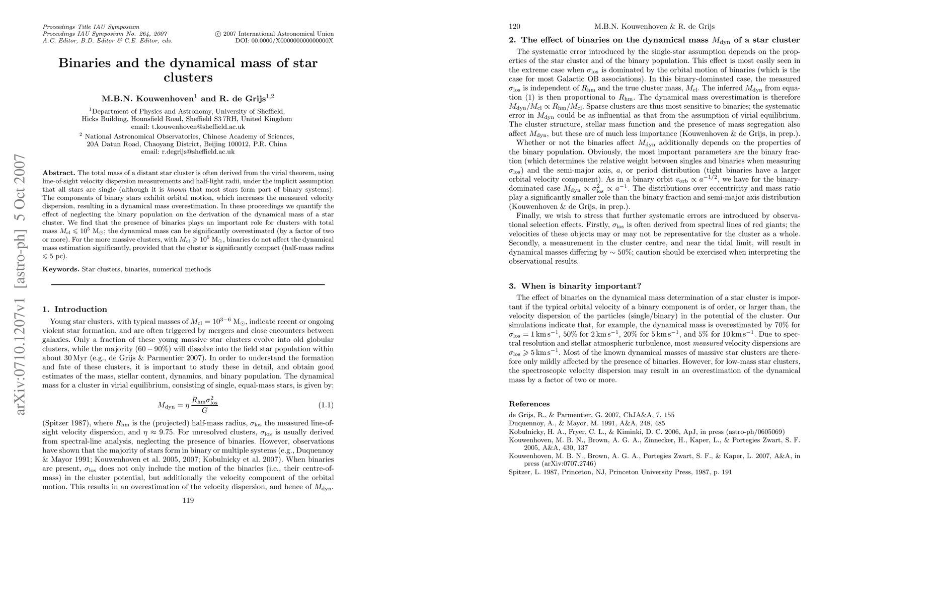 The total mass of a distant star cluster is often derived from the virial theorem, using line-of-sight velocity dispersion measurements and half-light radii, under the implicit assumption that all stars are single (although it is known that most stars form part of binary systems). The components of binary stars exhibit orbital motion, which increases the measured velocity dispersion, resulting in a dynamical mass overestimation. In this article we quantify the effect of neglecting the binary population on the derivation of the dynamical mass of a star cluster. We find that the presence of binaries plays an important role for clusters with total mass M < 10^5 Msun; the dynamical mass can be significantly overestimated (by a factor of two or more). For the more massive clusters, with Mcl > 10^5 Msun, binaries do not affect the dynamical mass estimation significantly, provided that the cluster is significantly compact (half-mass radius < 5 pc).
