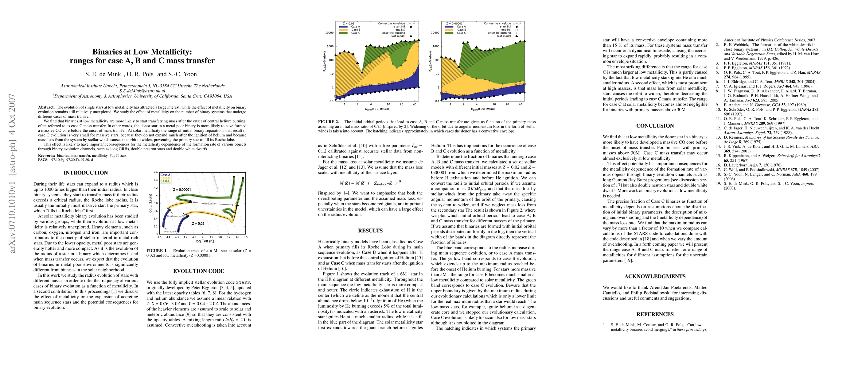 This paper investigates how low metallicity affects binary star systems' mass transfer processes, finding that low metallicity increases the likelihood of case C mass transfer post central helium burning. The study highlights that at solar metallicity, case C evolution is rare due to limited expansion and increased mass loss, which has significant implications for the formation rates of objects like long GRBs and double neutron stars.