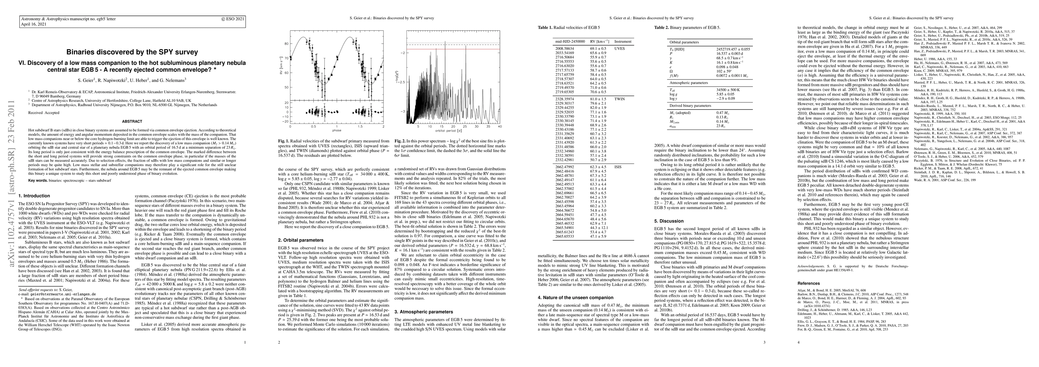 Hot subdwarf B stars (sdBs) in close binary systems are assumed to be formed via common envelope ejection. According to theoretical models, the amount of energy and angular momentum deposited in the common envelope scales with the mass of the companion. That low mass companions near or below the core hydrogen-burning limit are able to trigger the ejection of this envelope is well known. The currently known systems have very short periods $\simeq0.1-0.3\,{\rm d}$. Here we report the discovery of a low mass companion ($M_{\rm 2}>0.14\,M_{\rm \odot}$) orbiting the sdB star and central star of a planetary nebula EGB\,5 with an orbital period of $16.5\,{\rm d}$ at a minimum separation of $23\,R_{\rm \odot}$. Its long period is only just consistent with the energy balance prescription of the common envelope. The marked difference between the short and long period systems will provide strong constraints on the common envelope phase, in particular if the masses of the sdB stars can be measured accurately. Due to selection effects, the fraction of sdBs with low mass companions and similar or longer periods may be quite high. Low mass stellar and substellar companions may therefore play a significant role for the still unclear formation of hot subdwarf stars. Furthermore, the nebula around EGB\,5 may be the remnant of the ejected common envelope making this binary a unique system to study this short und poorly understood phase of binary evolution.